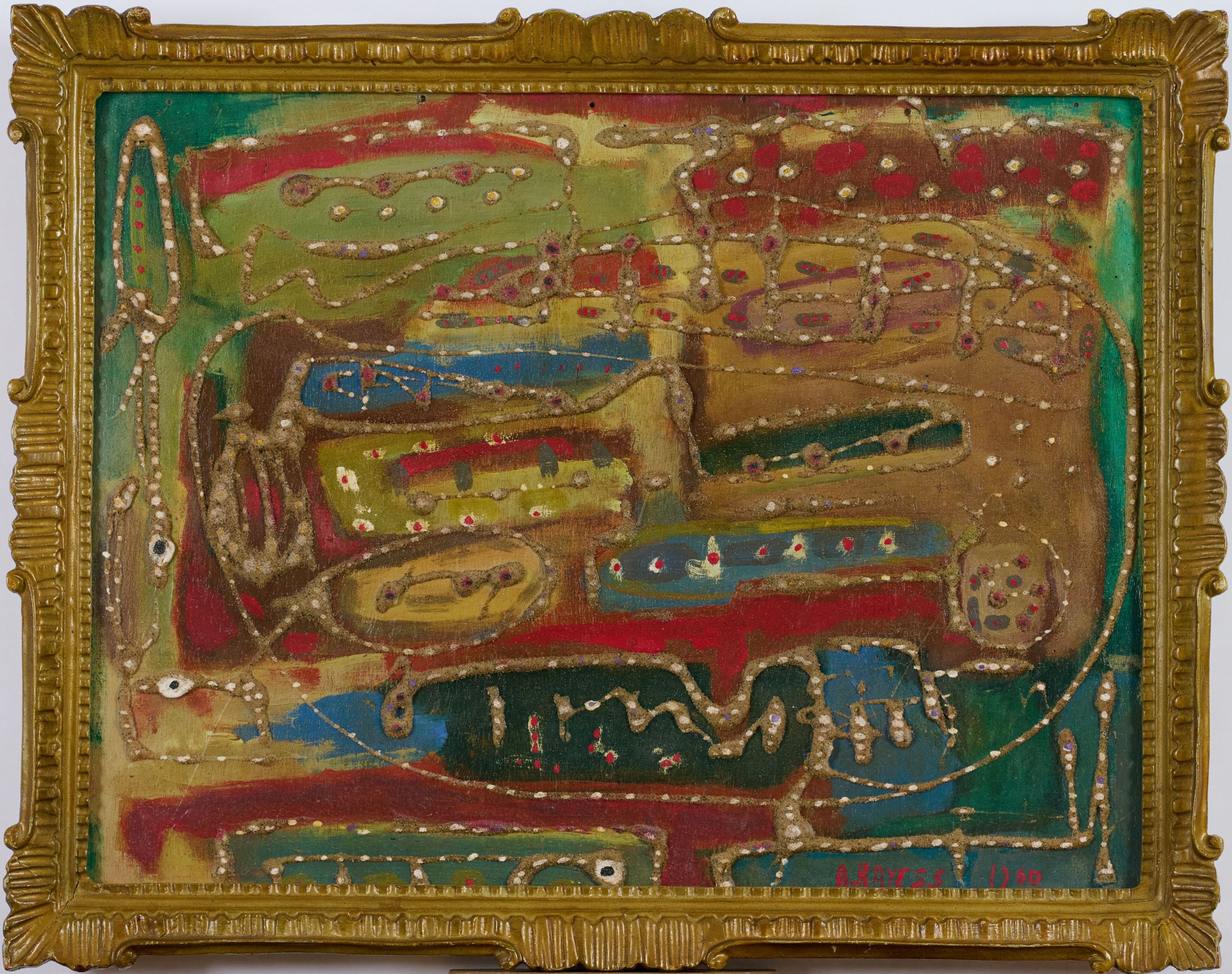 Olio, sabbia e tecnica mista su tavola, cm. 31x41,5