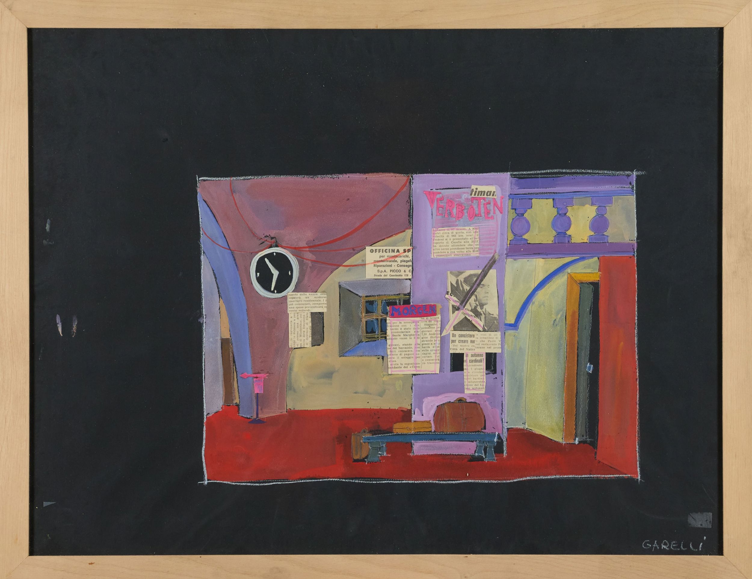 Collage e tecnica mista su cartoncino nero, cm. 50x65