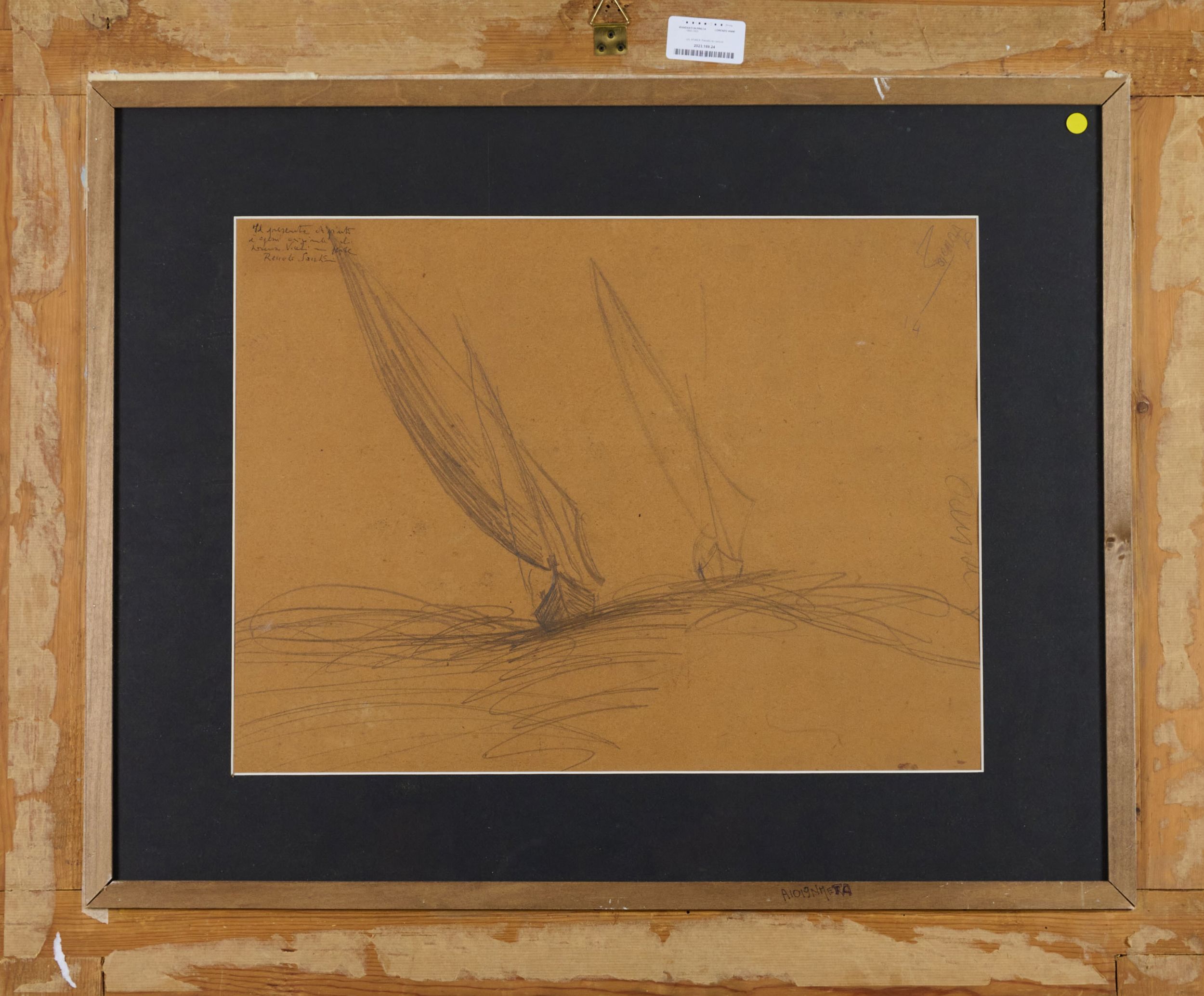 Sul verso: disegno a carboncino di due Tartane viareggine.