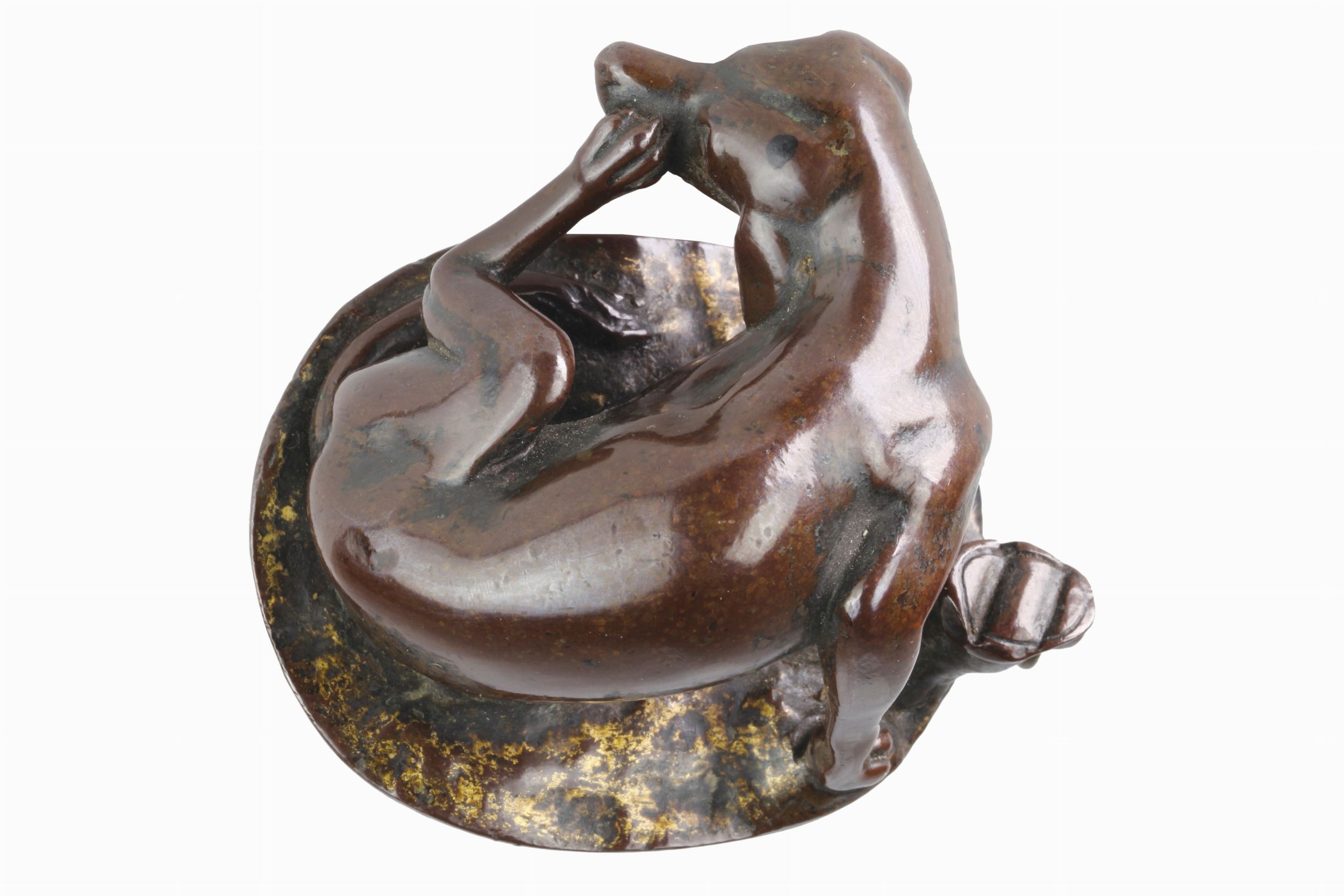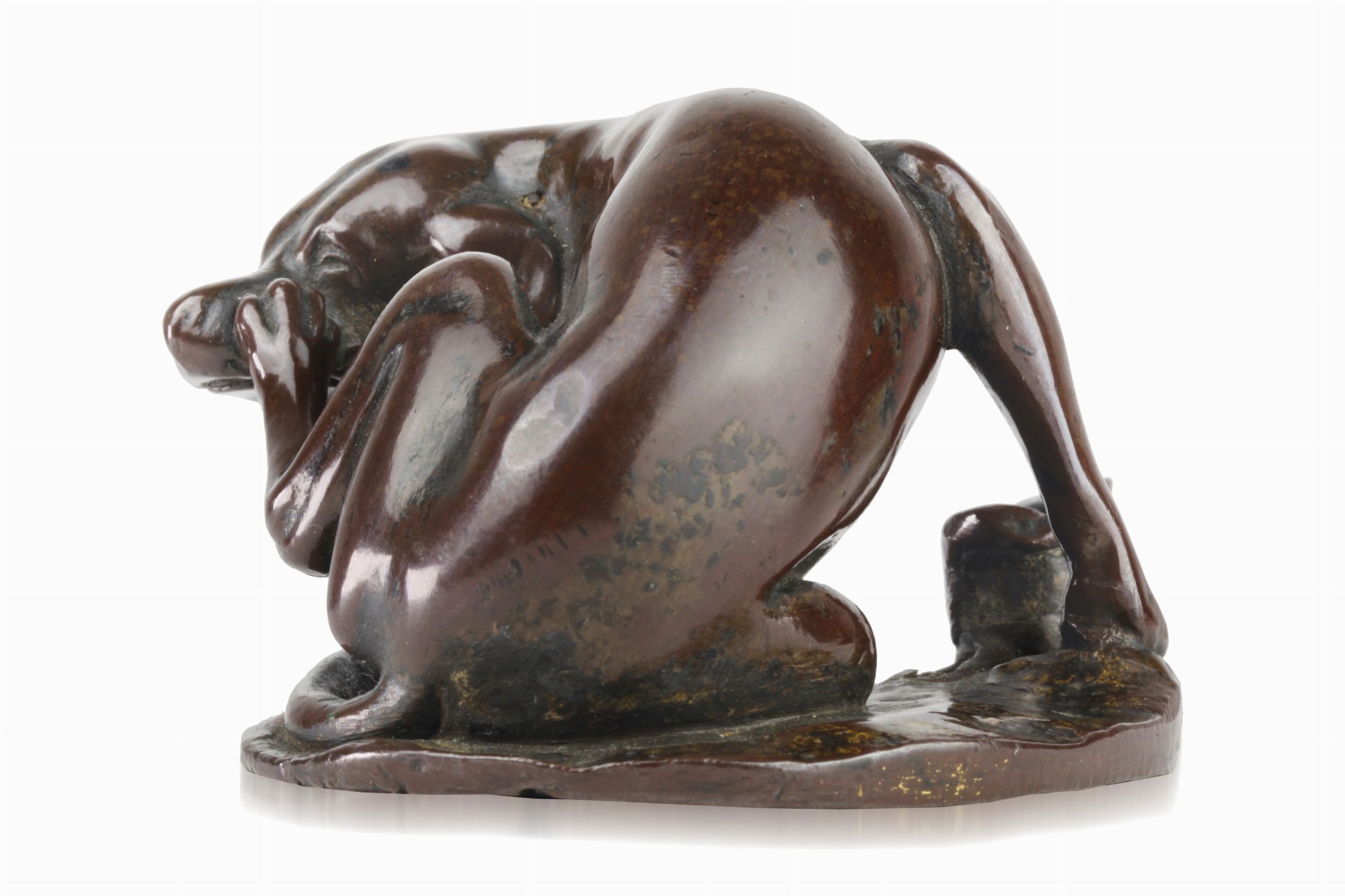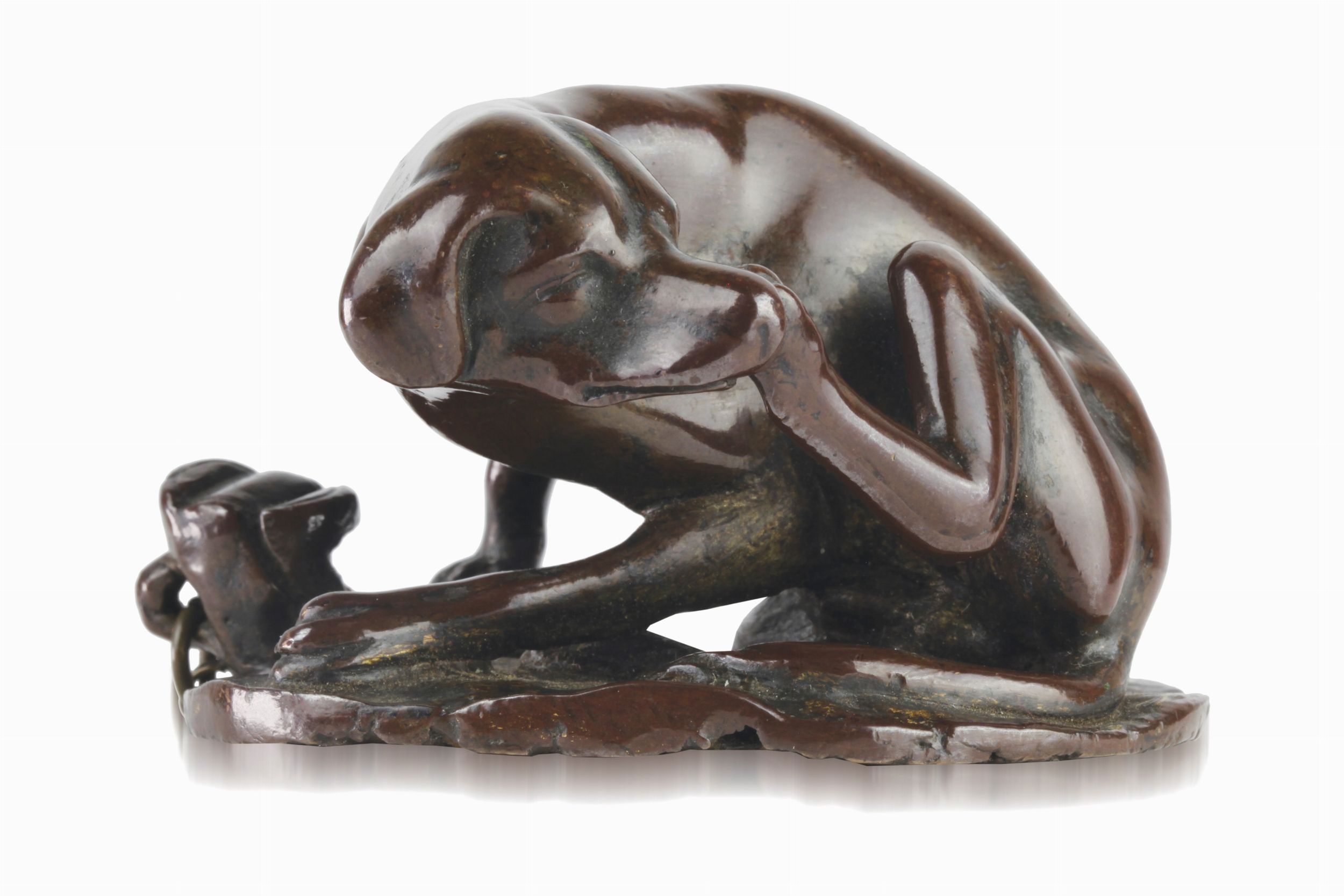 Incantevole bronzetto raffigurante un cagnolino che si gratta l'orecchio.