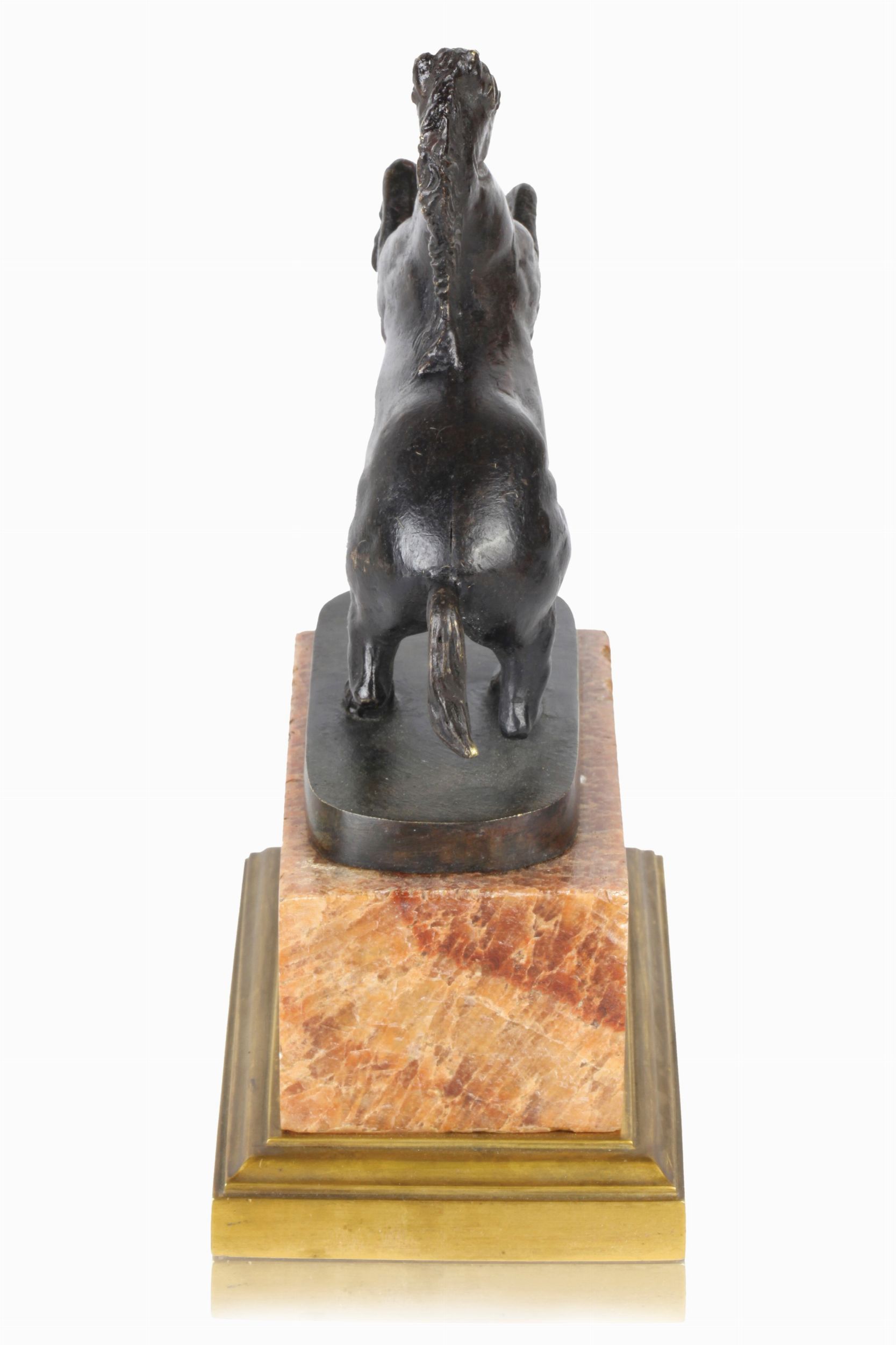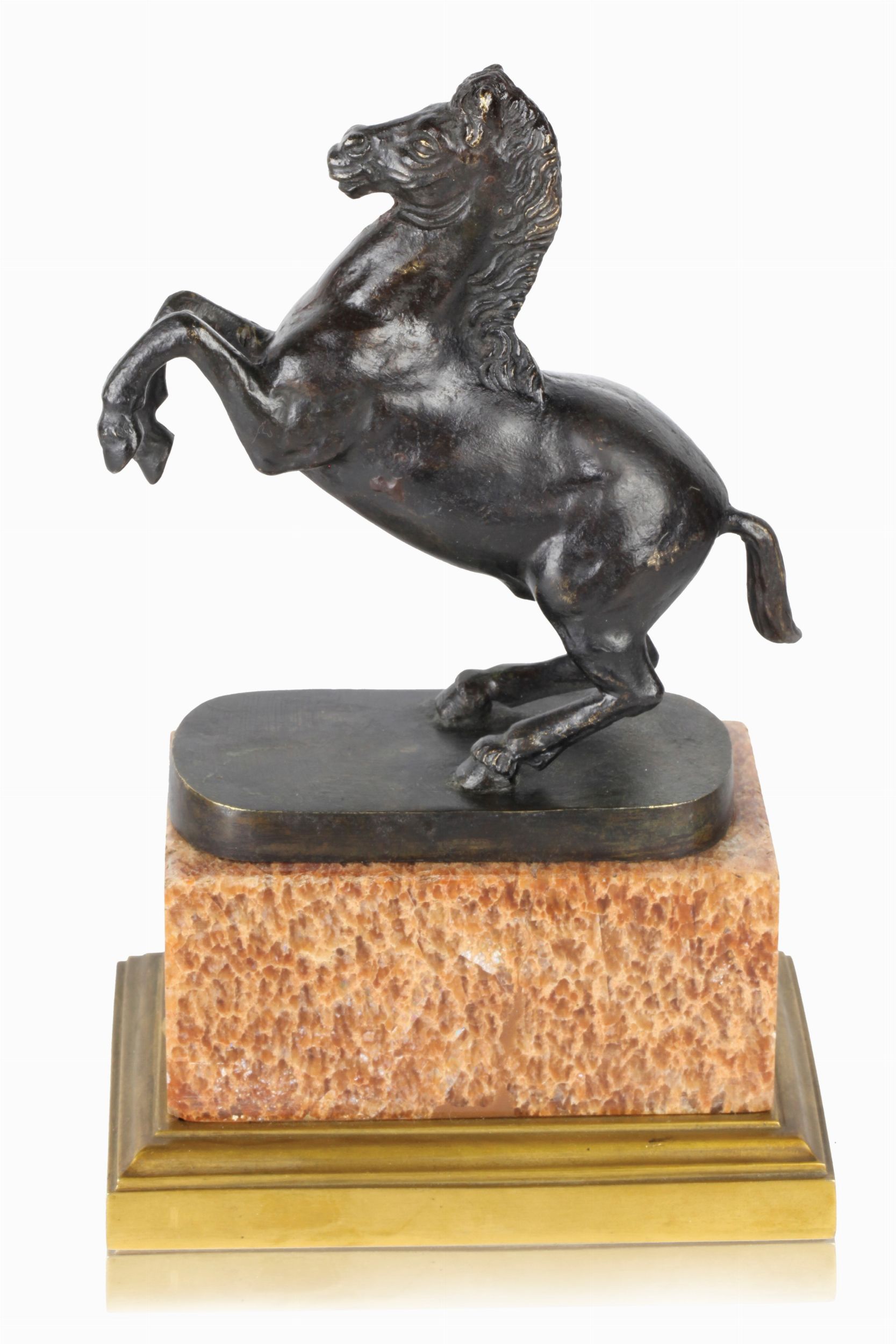 Bel cavallino rampante con spessa patinatura artificiale bituminosa.