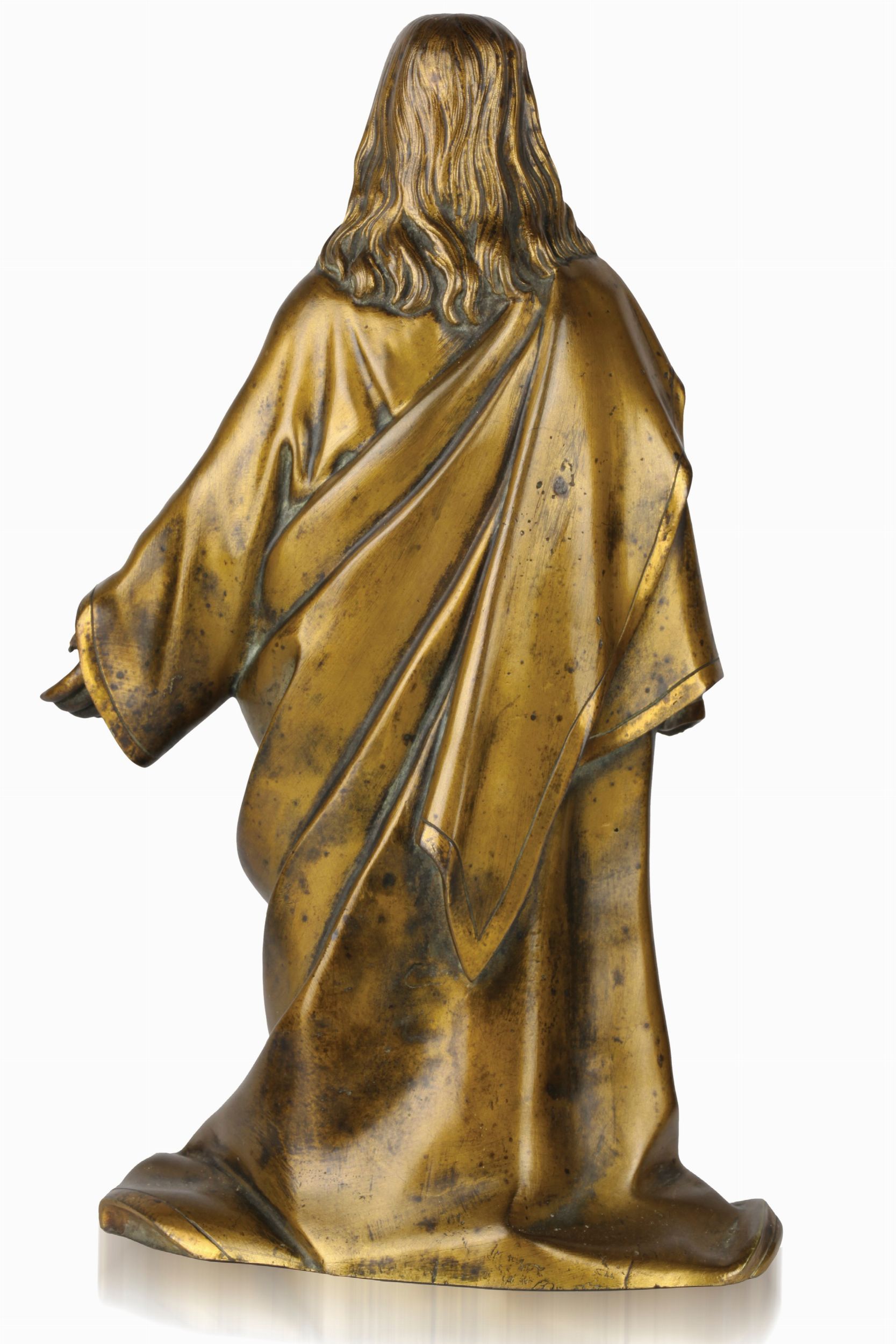 Bella fusione a tema religioso raffigurante un Cristo dorato in piedi.