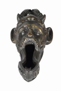 Bronzo, patina trasparente dorata con tracce di patina nera, 23x13,5x12 cm XVI-XVII secolo Un satiro avanzante [..]