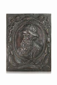 Bronzo patinato nero, 41,5x28x3 cm Anonima fonderia italiana XIX secolo Grande placca realizzata in bassorilievo, [..]