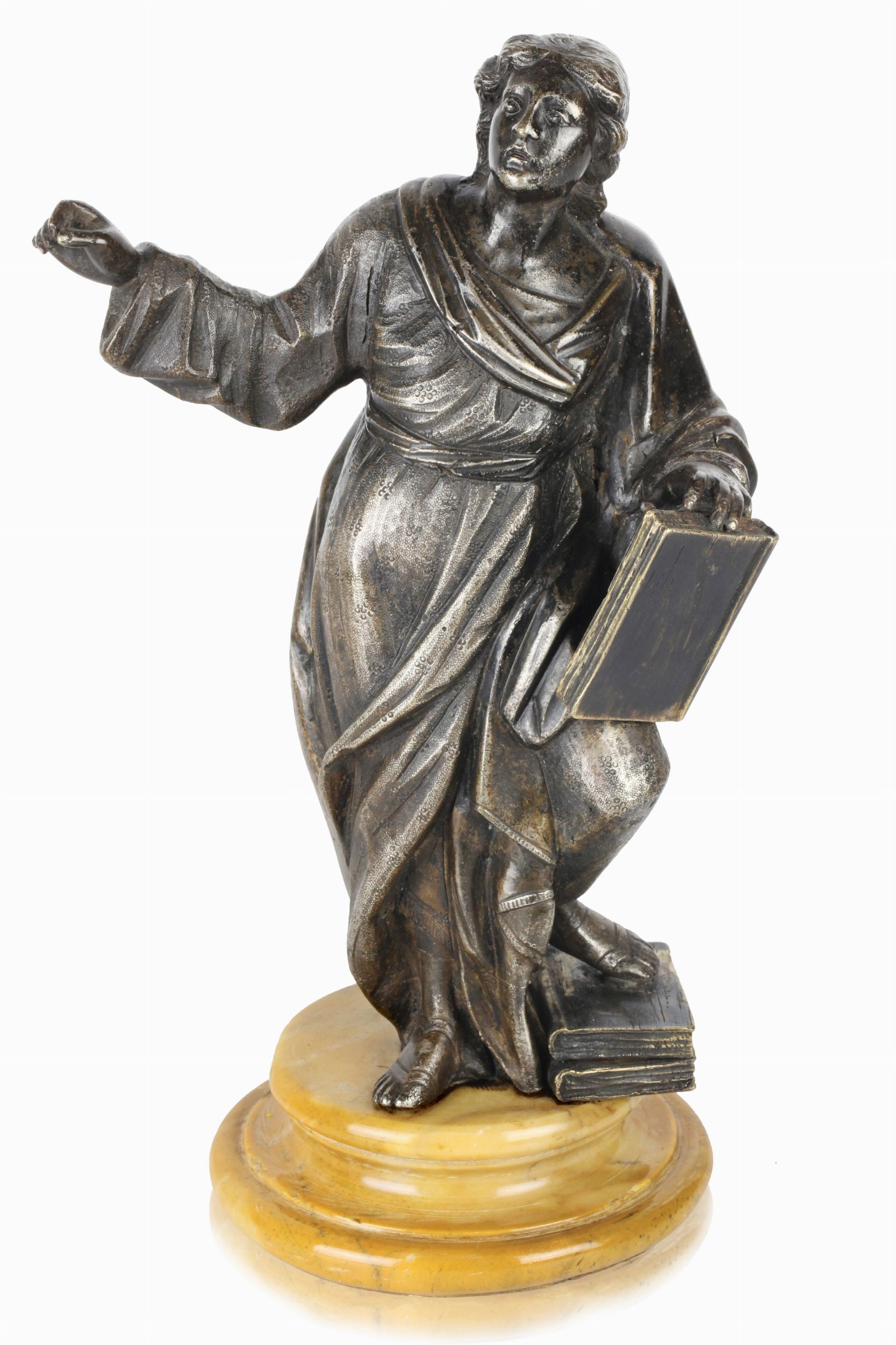 La bella statuetta qui presentata, raffigurante un San Giovanni Evangelista, si relaziona alla Maddalena del lotto precedente per la provenienza da una medesima composizione.