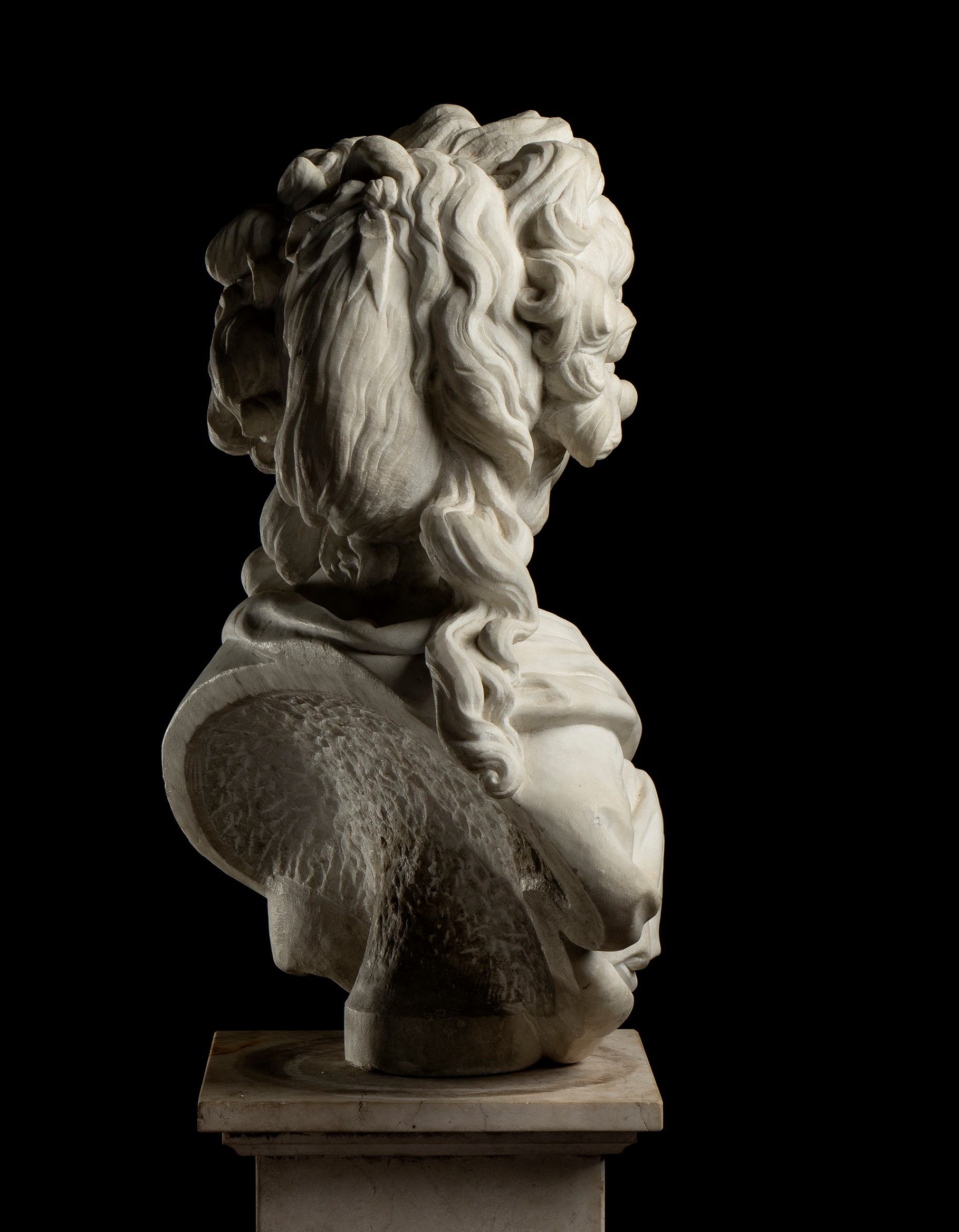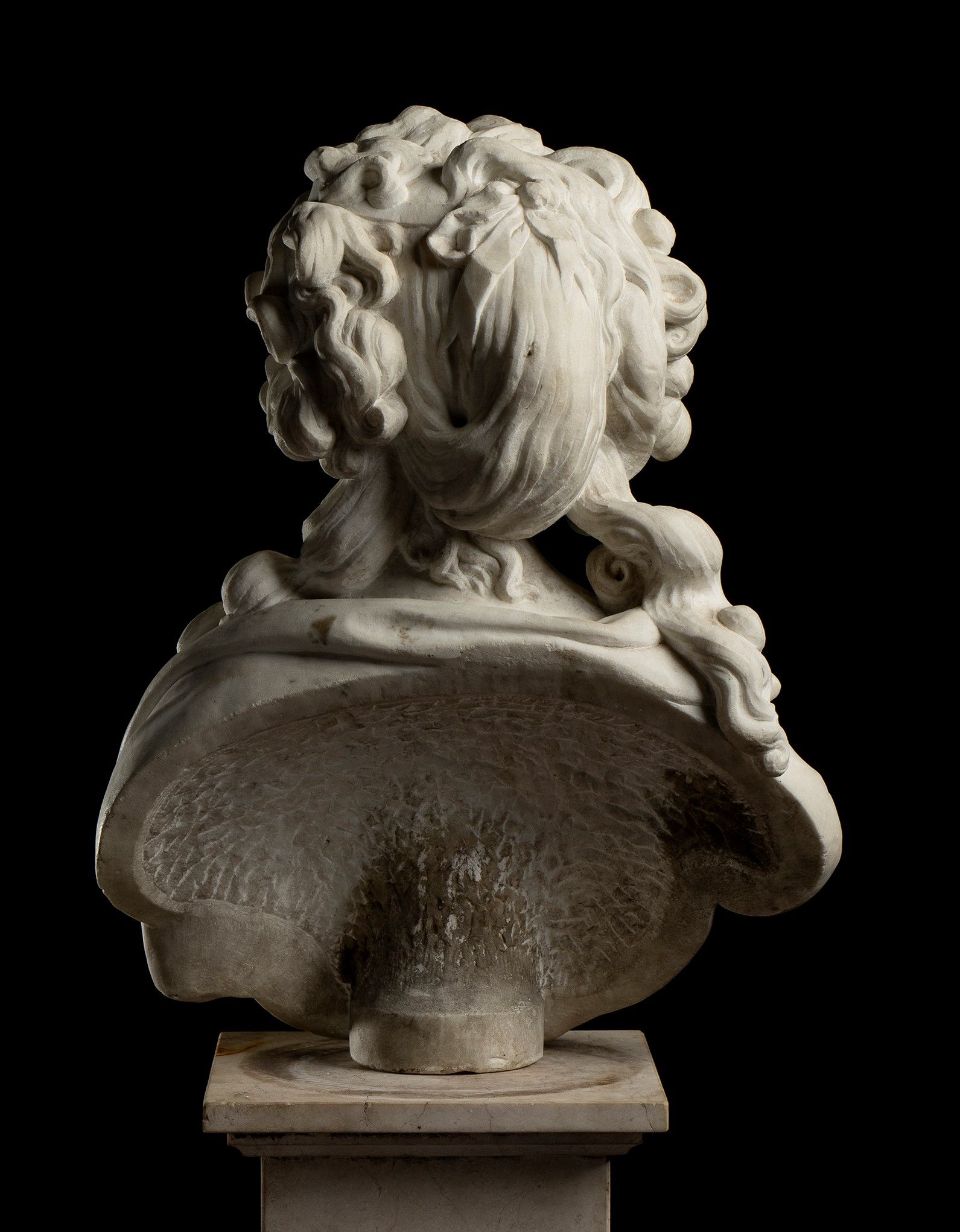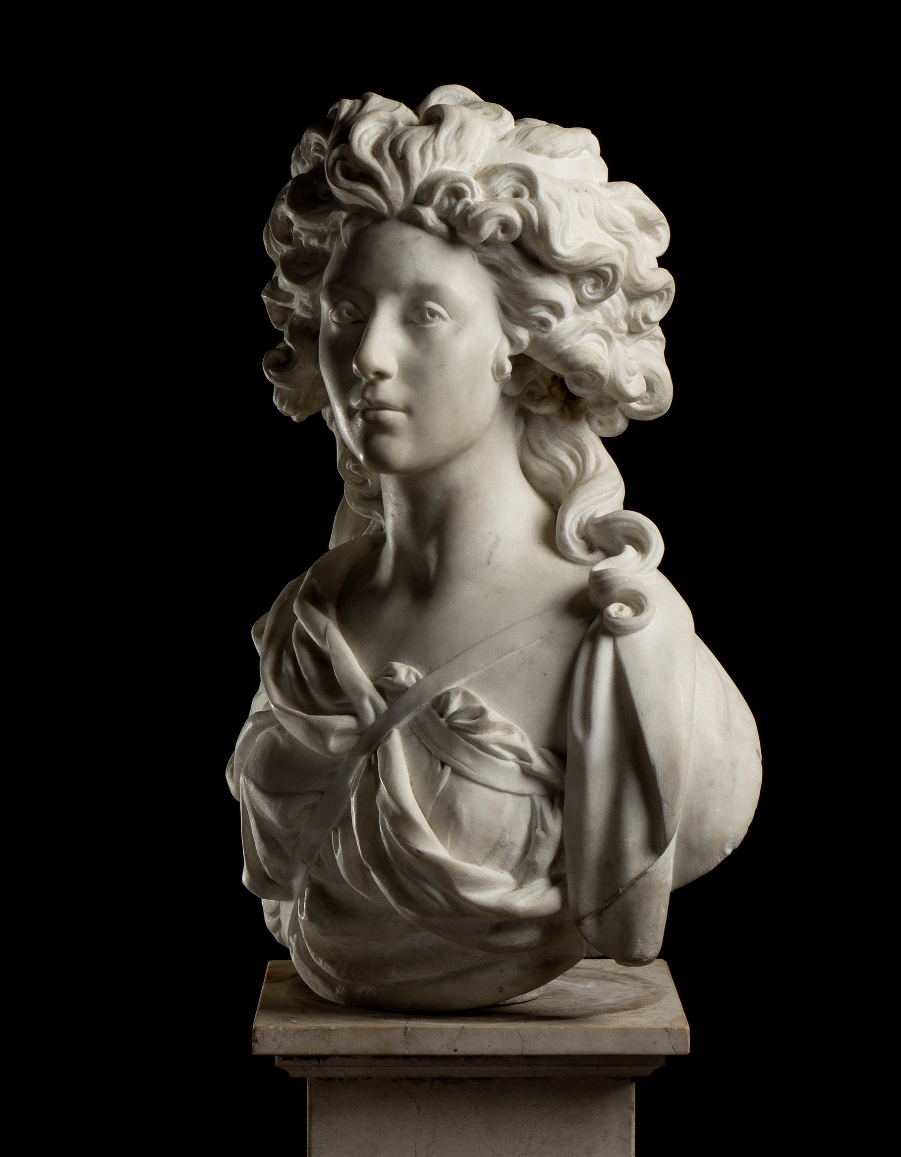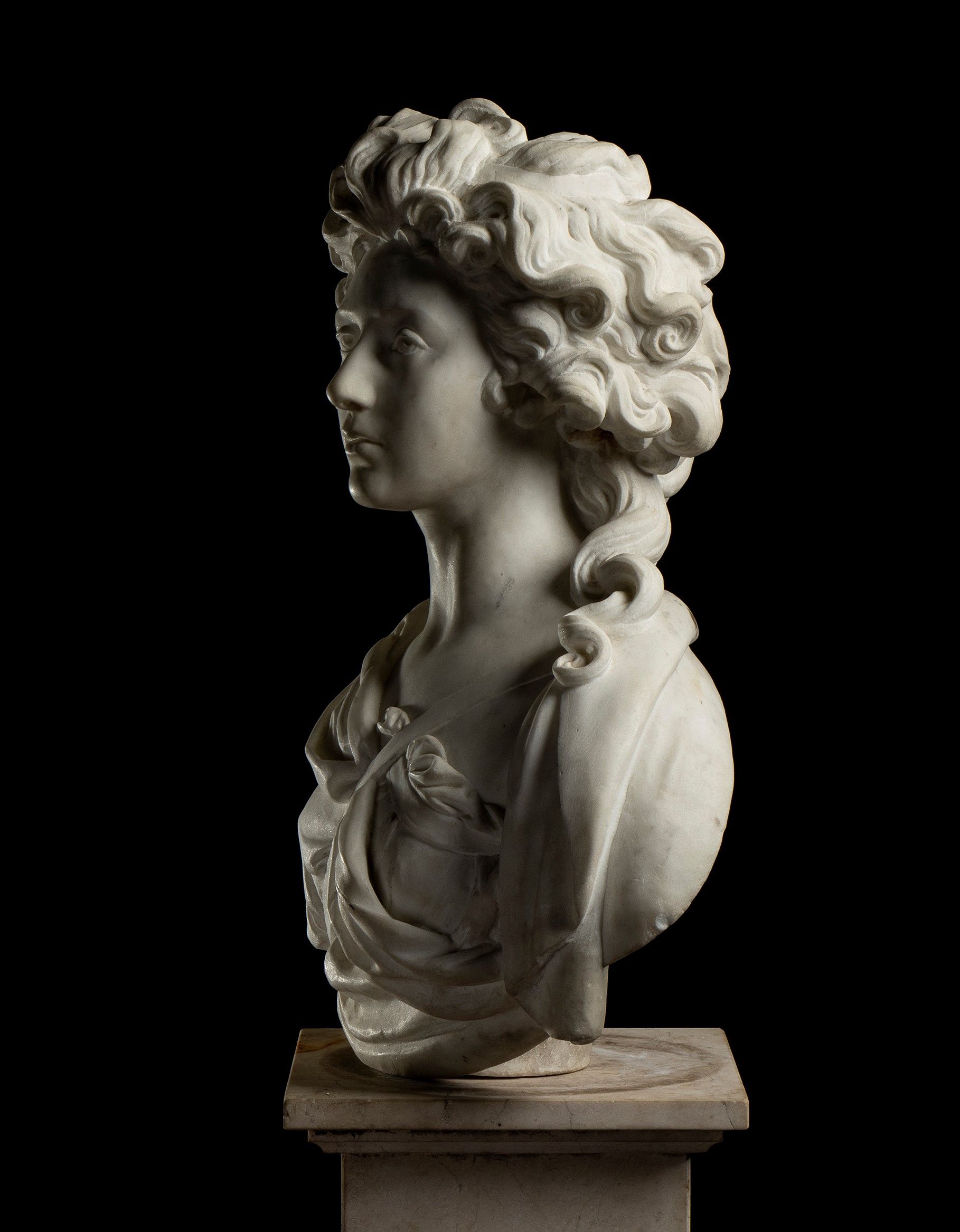 raffigurante nobildonnaa con capelli al vento in abiti campagna. La colonna di forma parallelepipeda è del XX secolo. Altezza x larghezza x profondità busto: 63 x 50 x 30 cm. Altezza x larghezza x profondità colonna: 125 x 29 x 29 cm. Stato di conservazione: ***** eccellente.