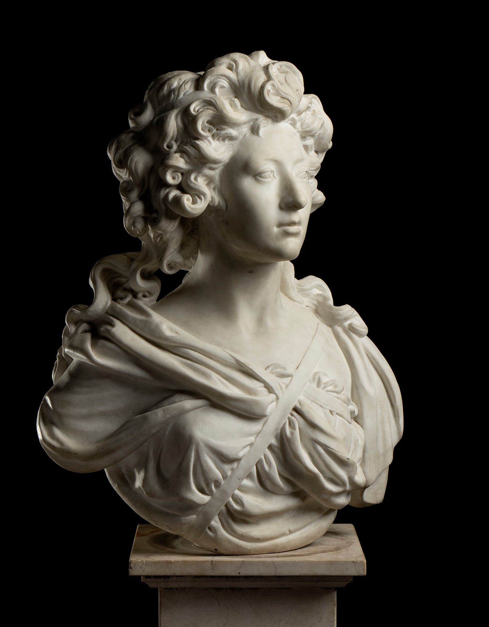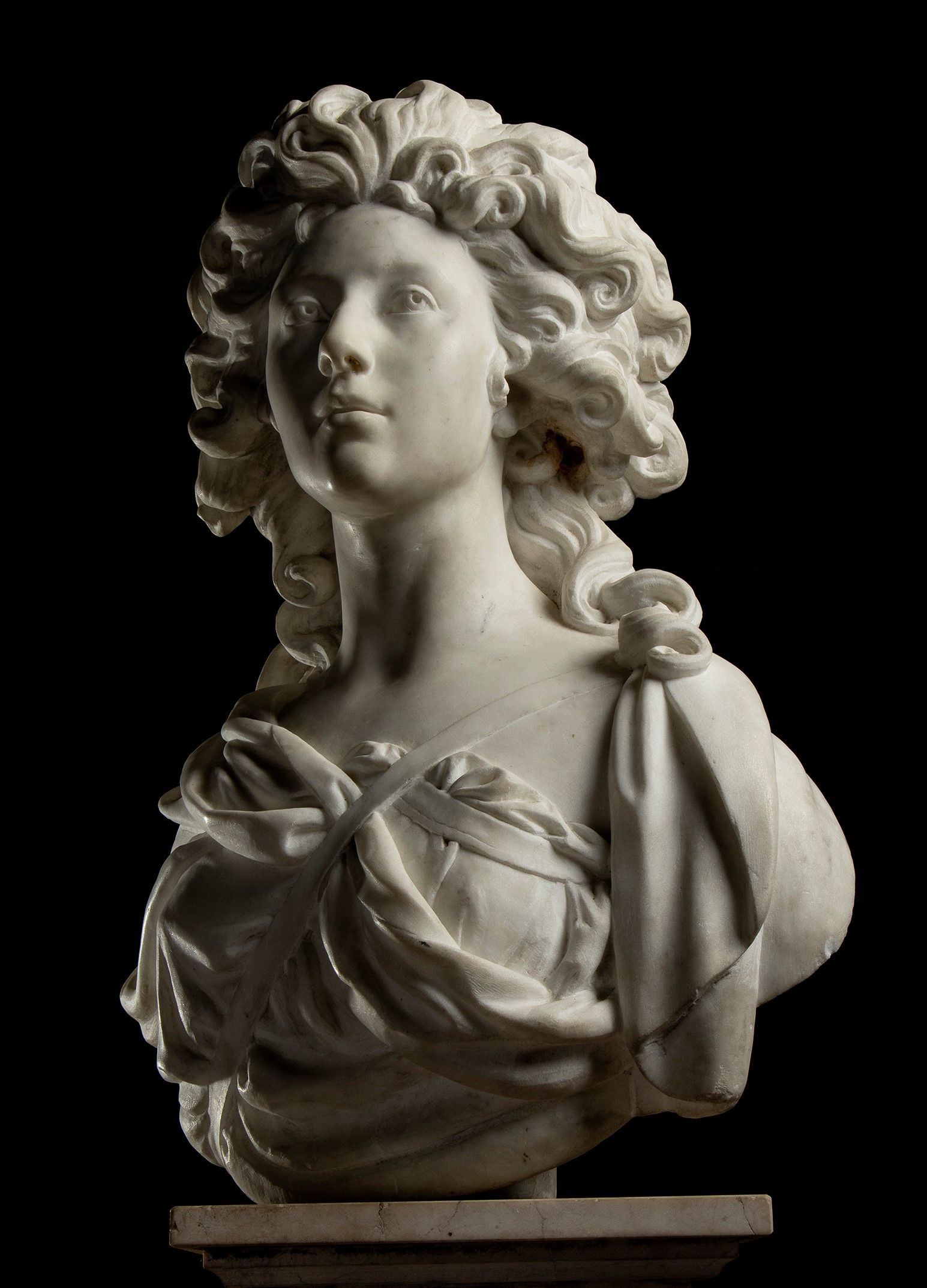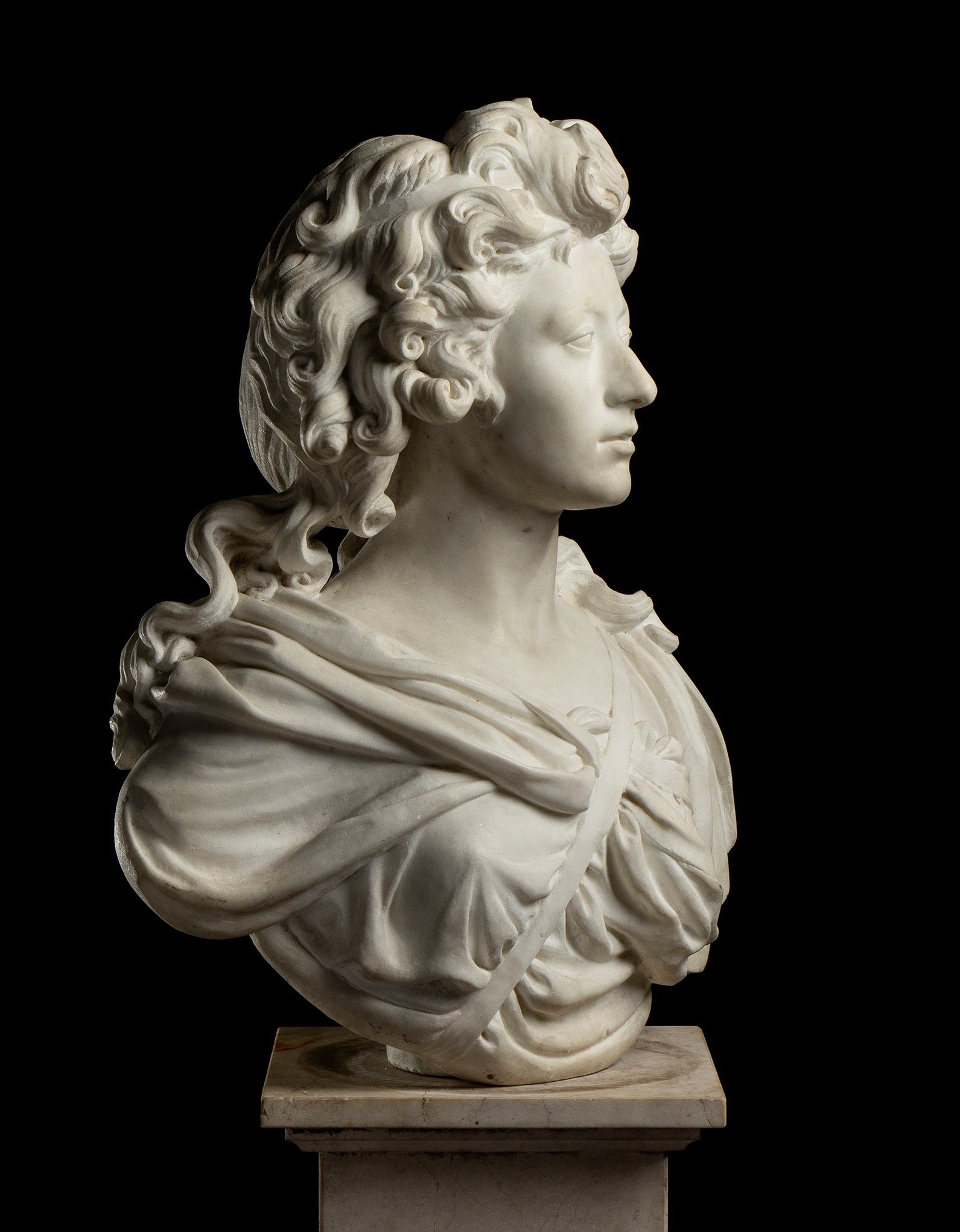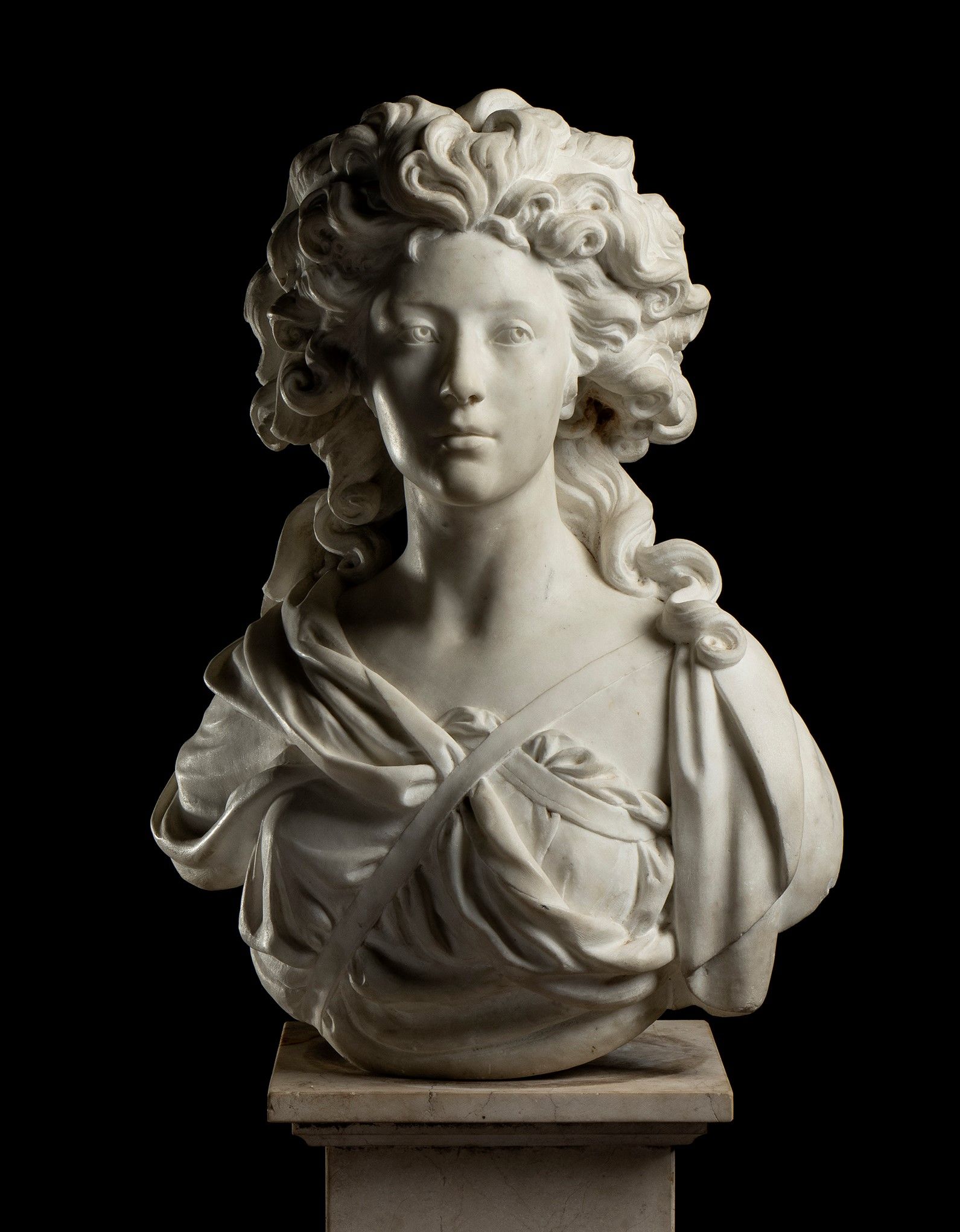 raffigurante nobildonnaa con capelli al vento in abiti campagna. La colonna di forma parallelepipeda è del XX secolo. Altezza x larghezza x profondità busto: 63 x 50 x 30 cm. Altezza x larghezza x profondità colonna: 125 x 29 x 29 cm. Stato di conservazione: ***** eccellente.