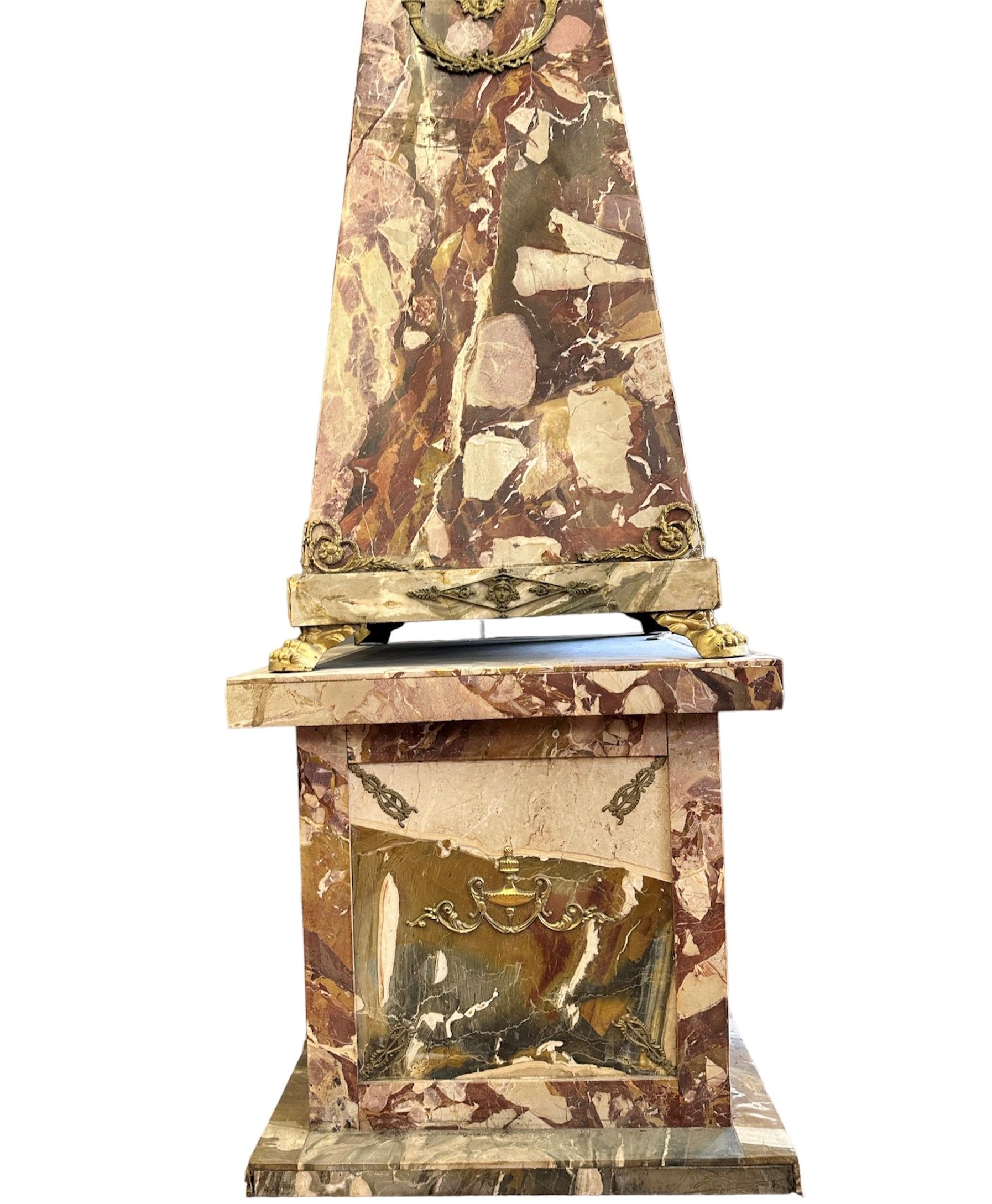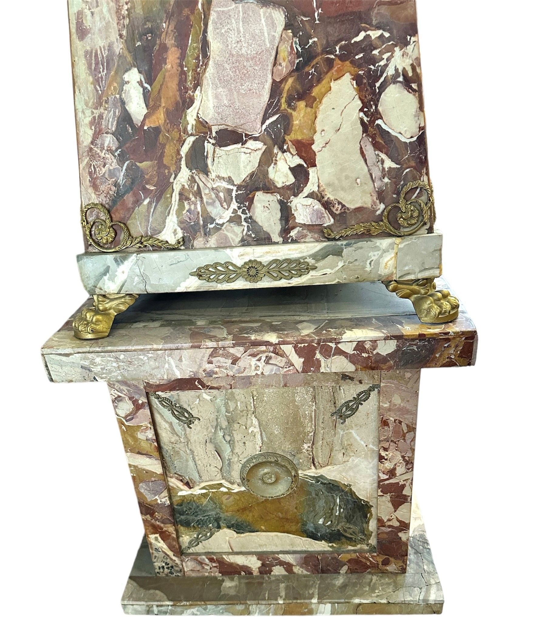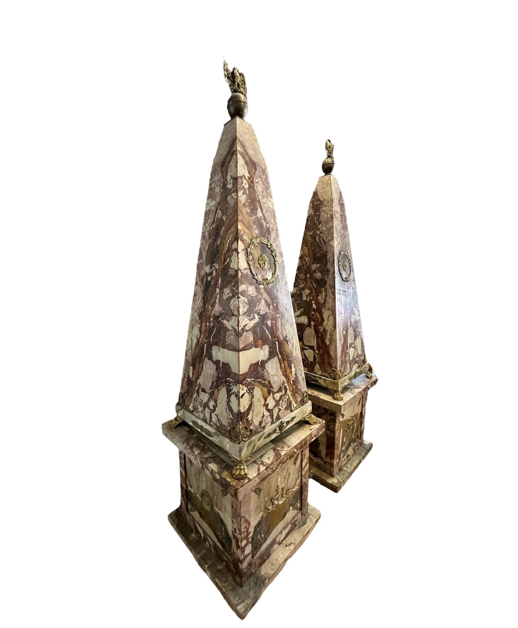 interamente placcati in diaspro siciliano a macchia aperta. Applicazioni in bronzo dorato ornano gli obelischi a tutto tondo. Nella parte superiore dominano due aquile in bronzo dorato.