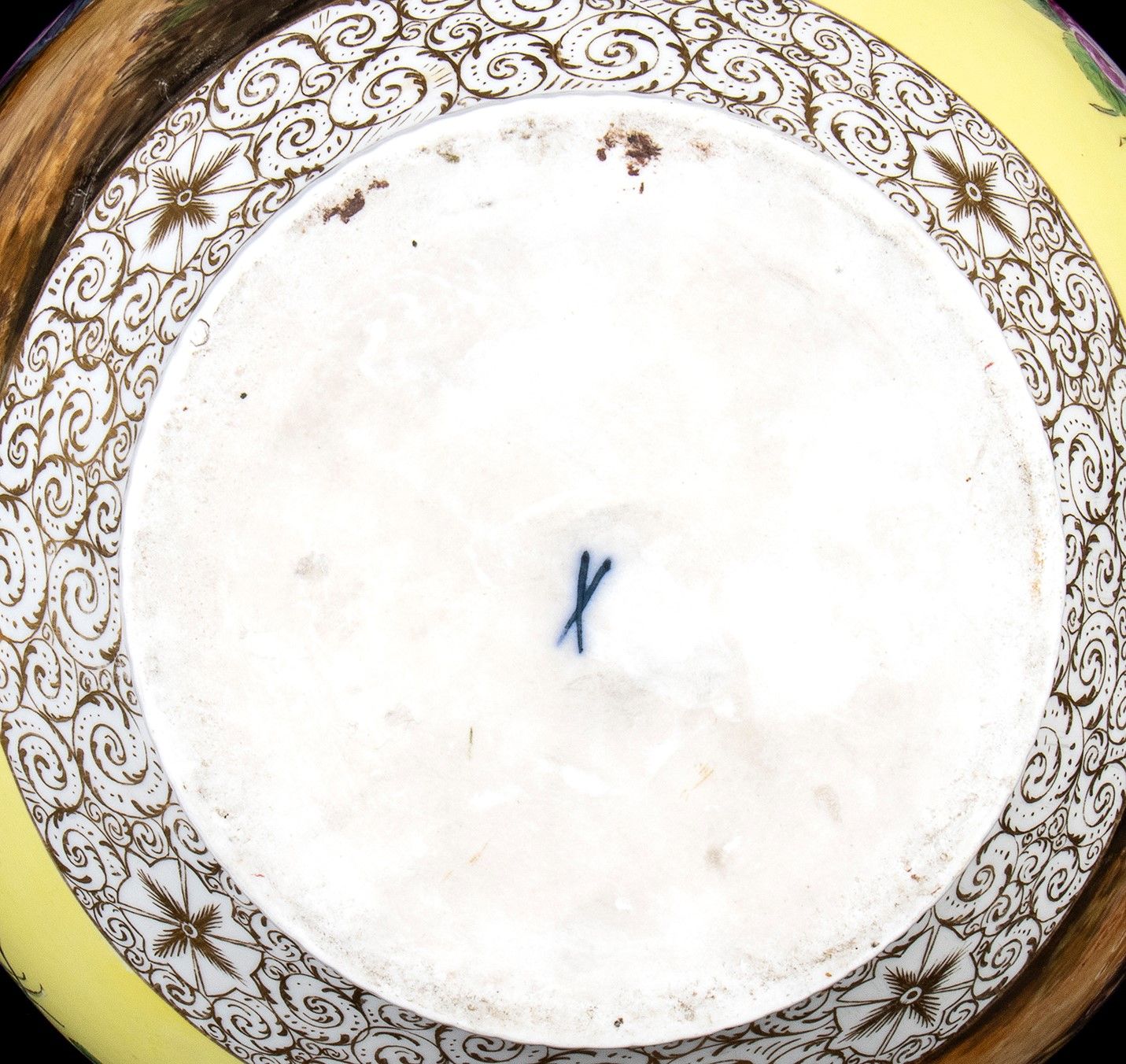decorazione policroma quadripartita raffigurante scene galanti. Marchi sotto base.