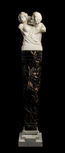Scultura in marmo statuario e portoro raffigurante Pan e Selene - Italia, XIX se [..]