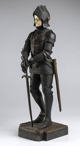 scultura criselefantina art déco in bronzo e avorio raffigurante guerriero in armatura con viso in avorio di [..]