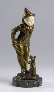 scultura criselefantina art déco raffigurante bimbo in costume e cagnolino, con viso in avorio di elefante [..]