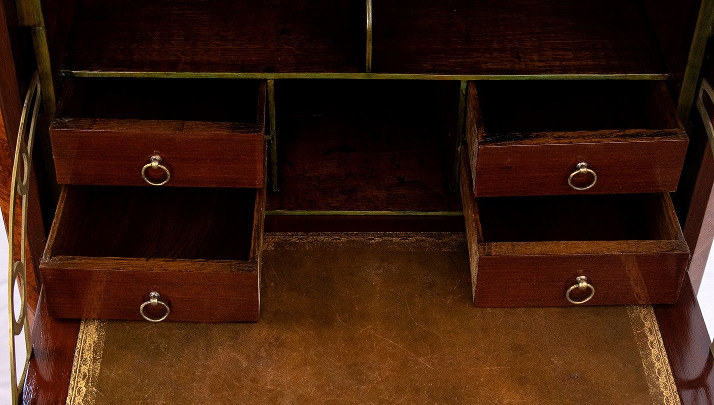 in legno di ebano viola con intarsi. Pierre Plテゥe (1742-1810) uno tra i maggiori Mテ「itre dell'epoca Luigi Xv, Transizione e Luigi XVI; questo secretaire ティ stampigliato sullo schienale P. Plテゥe e JME. (Jurande des mテ「itres テゥbテゥnist). Altezza x larghezza x profonditテ: 126 x 65,5 x 35,5 cm. Stato di conservazione: ***** eccellente. (Ref. 窶廰e mobilier franテァais du XVIII siティcle窶 Pierre Kjellberg. Pag.658).