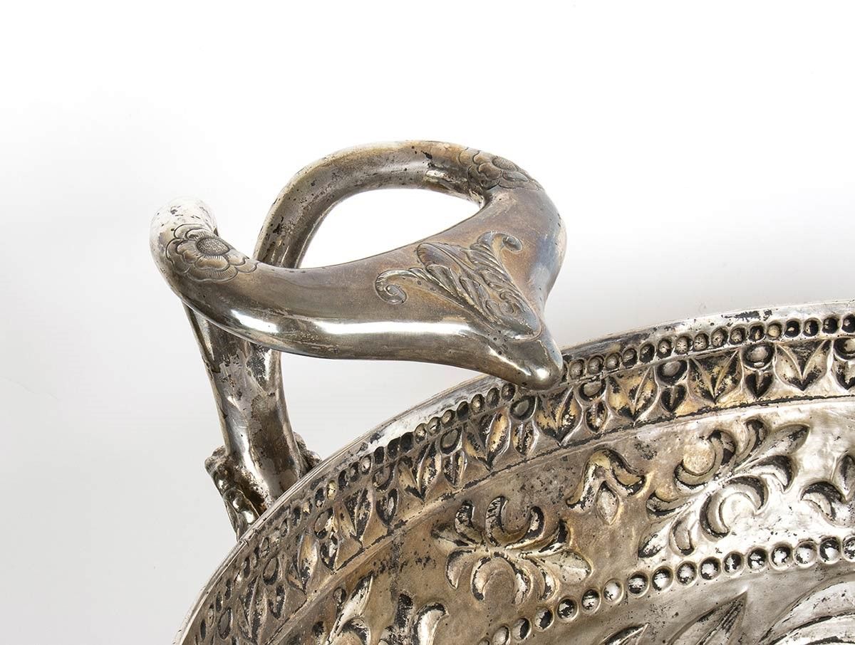Tavolo con coppia di vasi biansati peruviani in argento - inizio XX secolo
