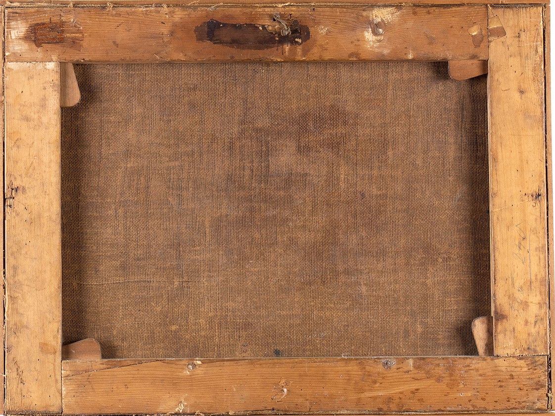 olio su tela raffigurante un gruppo di cinque personaggi; al centro la Vergine Maria affiancata sul lato destro da Sant'Antonio e San Giovanni Battista, sul sinistro da due figure di papi, uno dei quali è probabilmente Innocenzo IV. Altezza x larghezza: 62 x 46,5 cm. Stato di conservazione: **** buono.