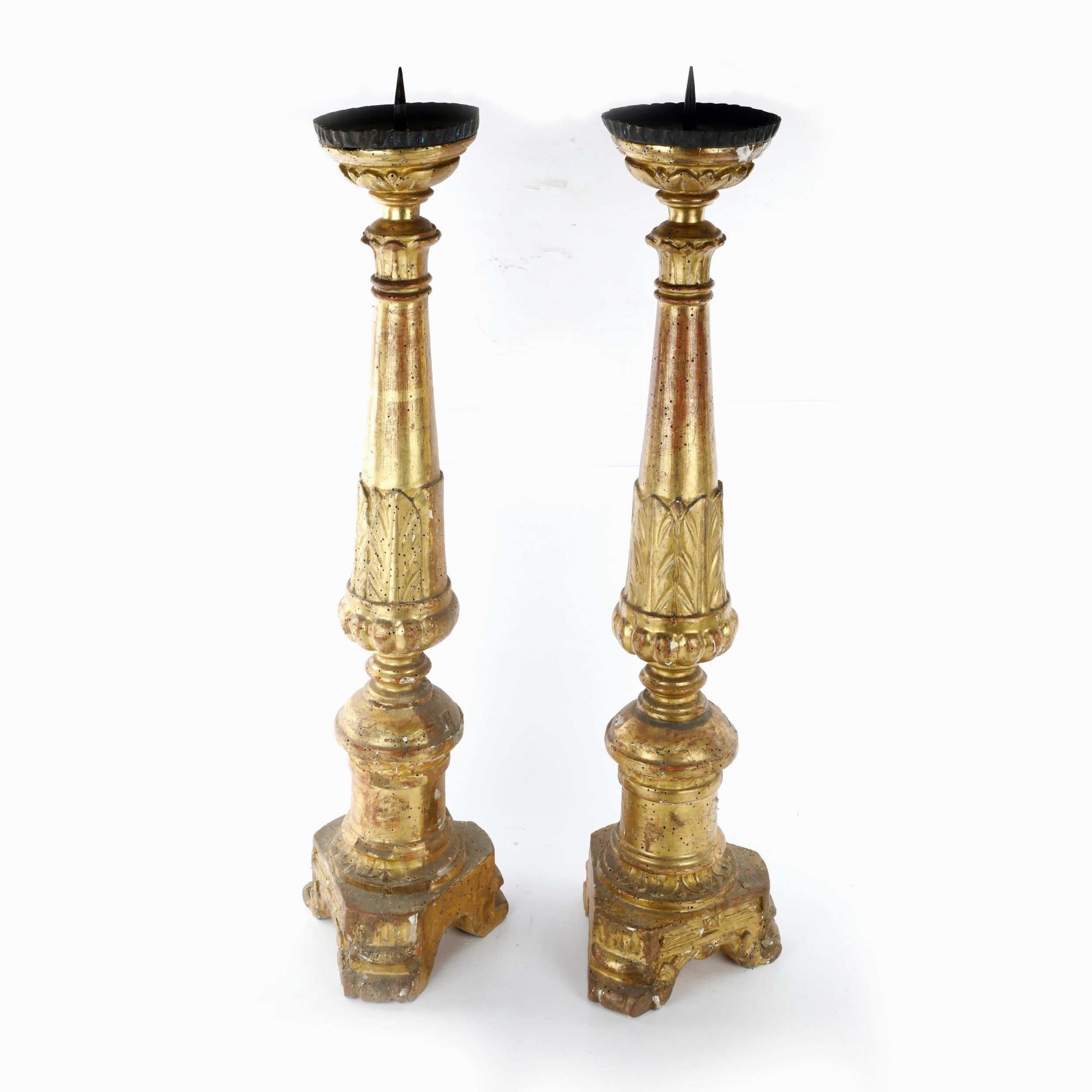 Coppia di torcieri in legno dorato