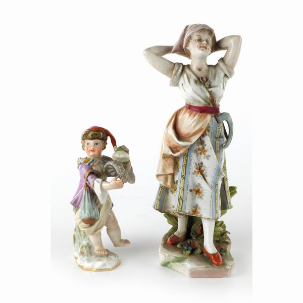inizi XX secolo in porcellana policroma fanciulla e bambino . Manifattura tedesca rotture e mancanze