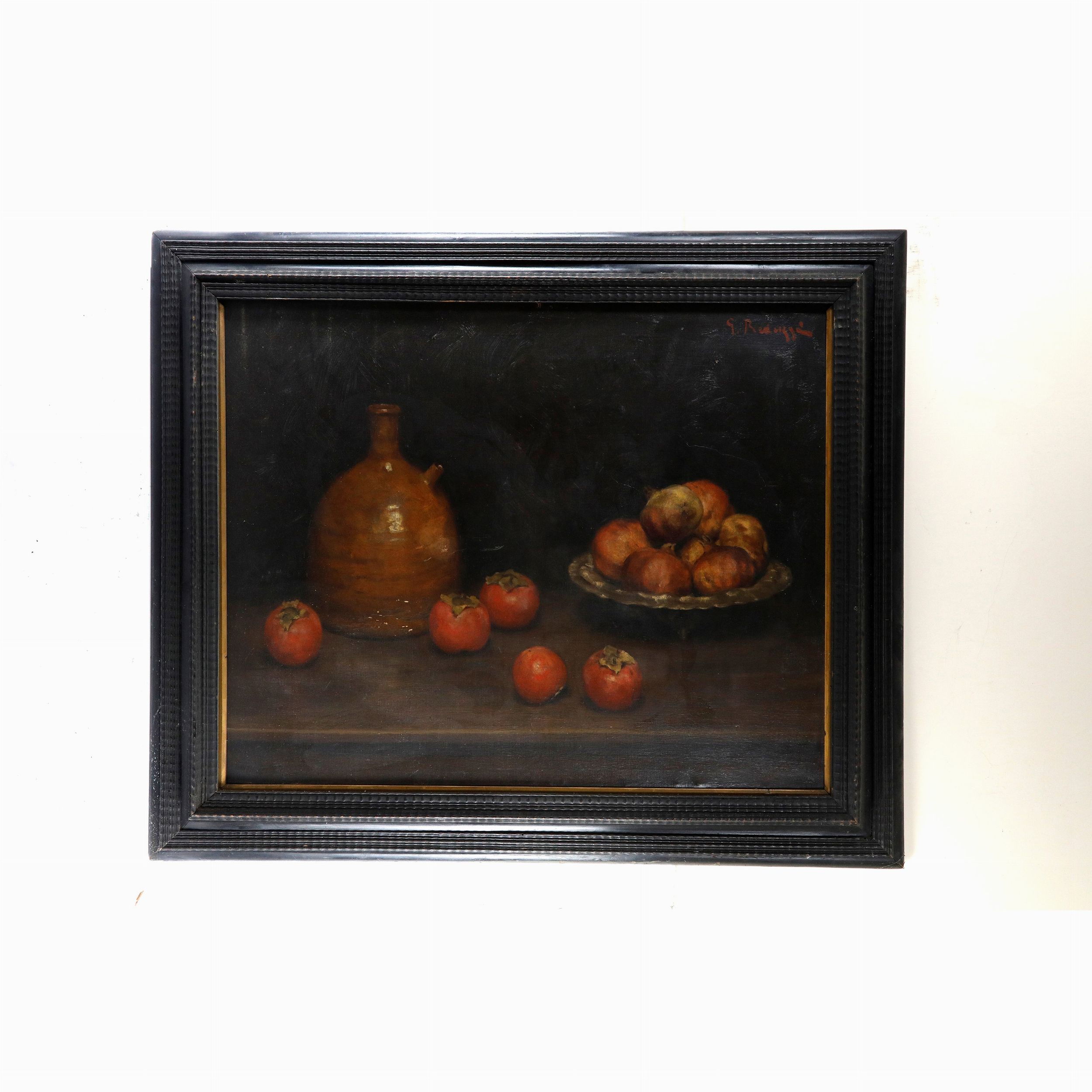 primo quarto del XX secolo entro cornice in legno coeva a lacca nera, firmato in alto a destra.