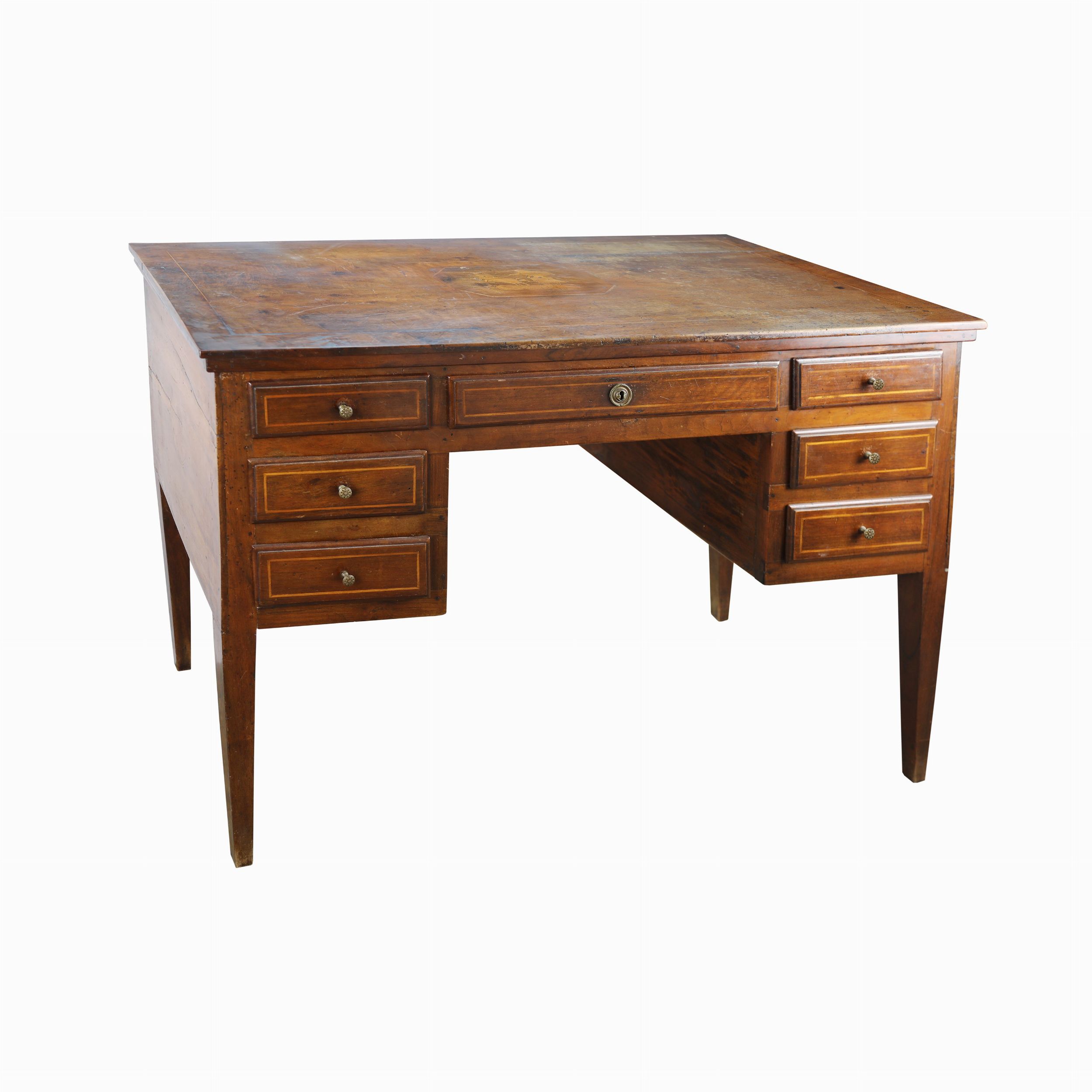 inizi XX secolo gambe a tronco di cono sul piano e sui fianchi, tarsie geometriche riquadrate
