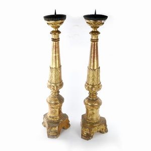 75 x 20 cm prima metà XIX secolo corpo a balaustro con base triangolare e piede d'appoggio ferini, dorature [..]