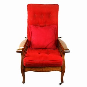 104 x 72 x 70 cm metà XX secolo piedi con le rotelle , schienale regolabile , tappezzeria rossa