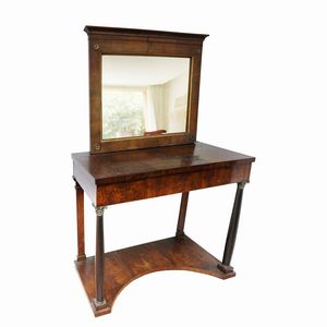 100 x 91 x 51 cm e 87 x 72 cm fine XIX inizi XX secolo Gambe a colonna raccordate alla base da semiluna con specchiera [..]