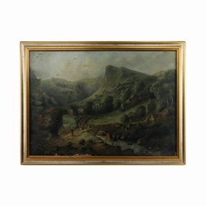 dipinto ad olio su tela, 51 x 71 cm XIX secolo in cornice non coeva , diverse cadute di colore.