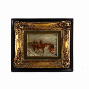 dipinto ad olio su tela, 88 x 120 cm seconda metà XIX secolo in cornice laccata e argentata parti incise.
