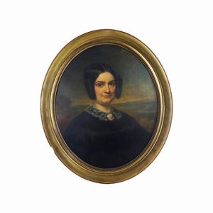 dipinto olio su tela, 65 x 54 cm seconda metà XIX secolo ad assetto ovale entro cornice coeva in legno dorato [..]