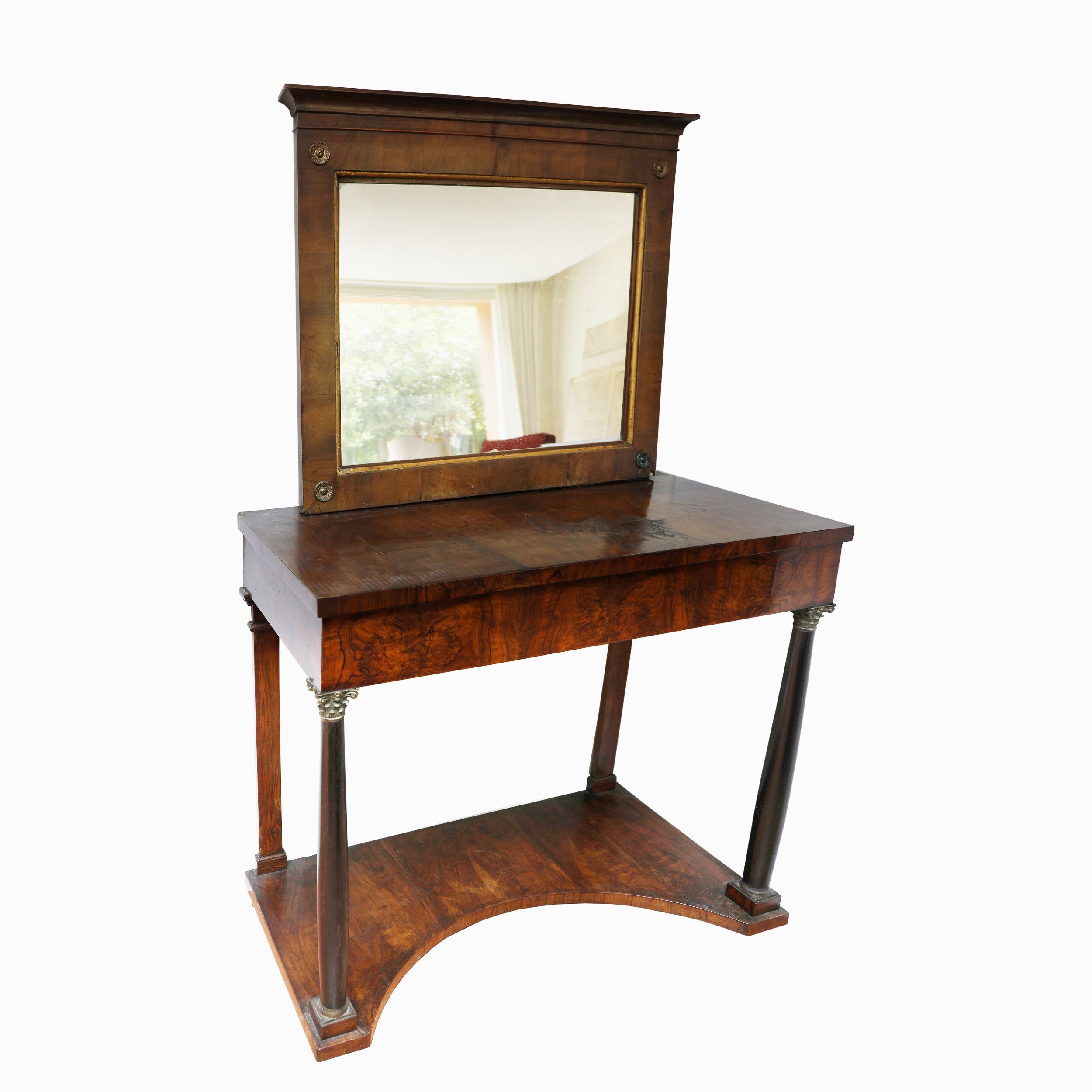 fine XIX inizi XX secolo Gambe a colonna raccordate alla base da semiluna con specchiera rettangolare en suite