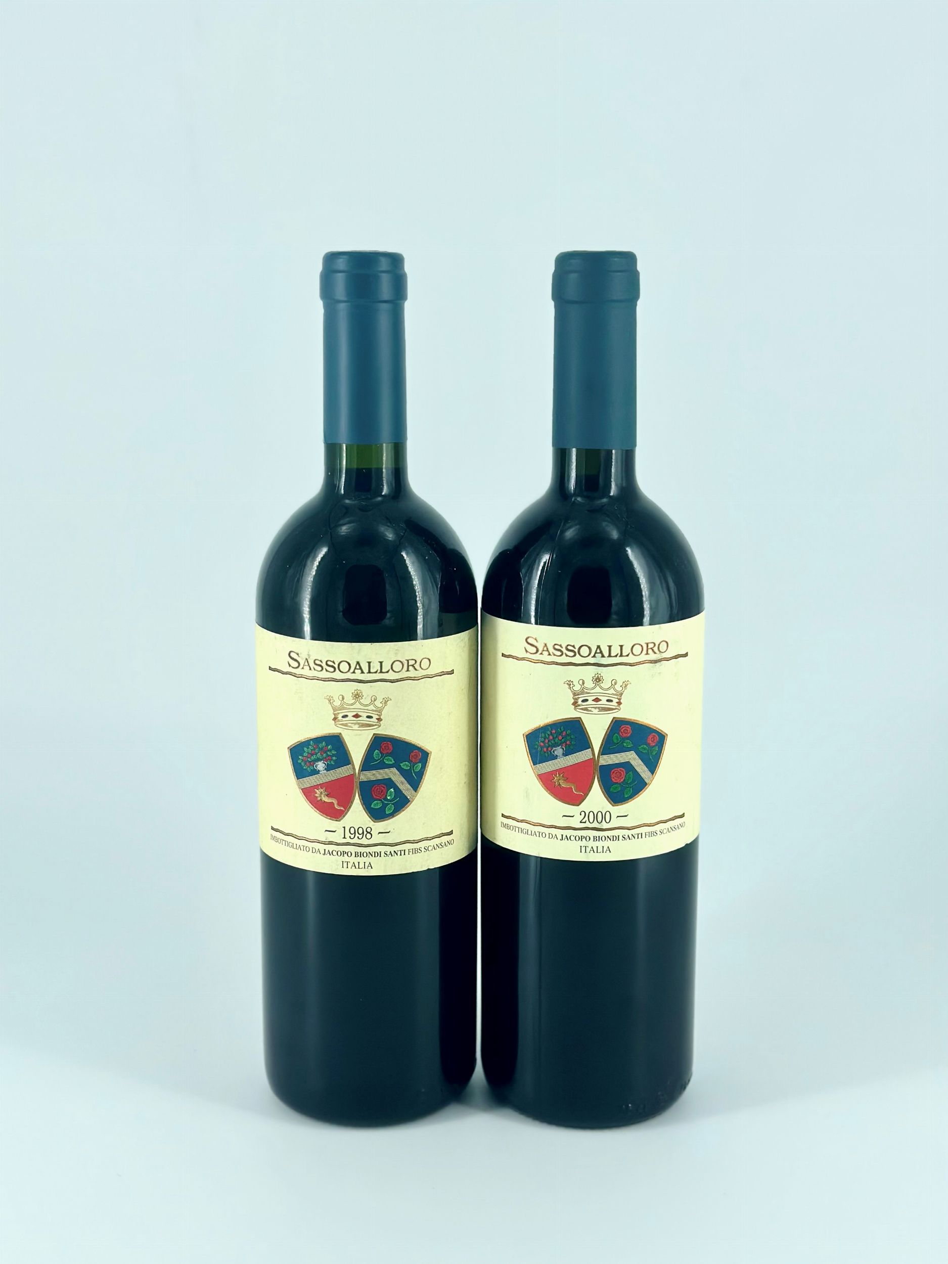 0,75 1998 a) Toscana, Sassoalloro IGT, annata 1998.Livello: entro il collo (WN), è il livello di colmatura standard.Condition report: etichetta e capsula in perfette condizioni.b) Toscana, Sassoalloro IGT, annata 2000.Livello: entro il collo (WN), è il livello di colmatura standard.Condition report: etichetta e capsula in perfette condizioni.
