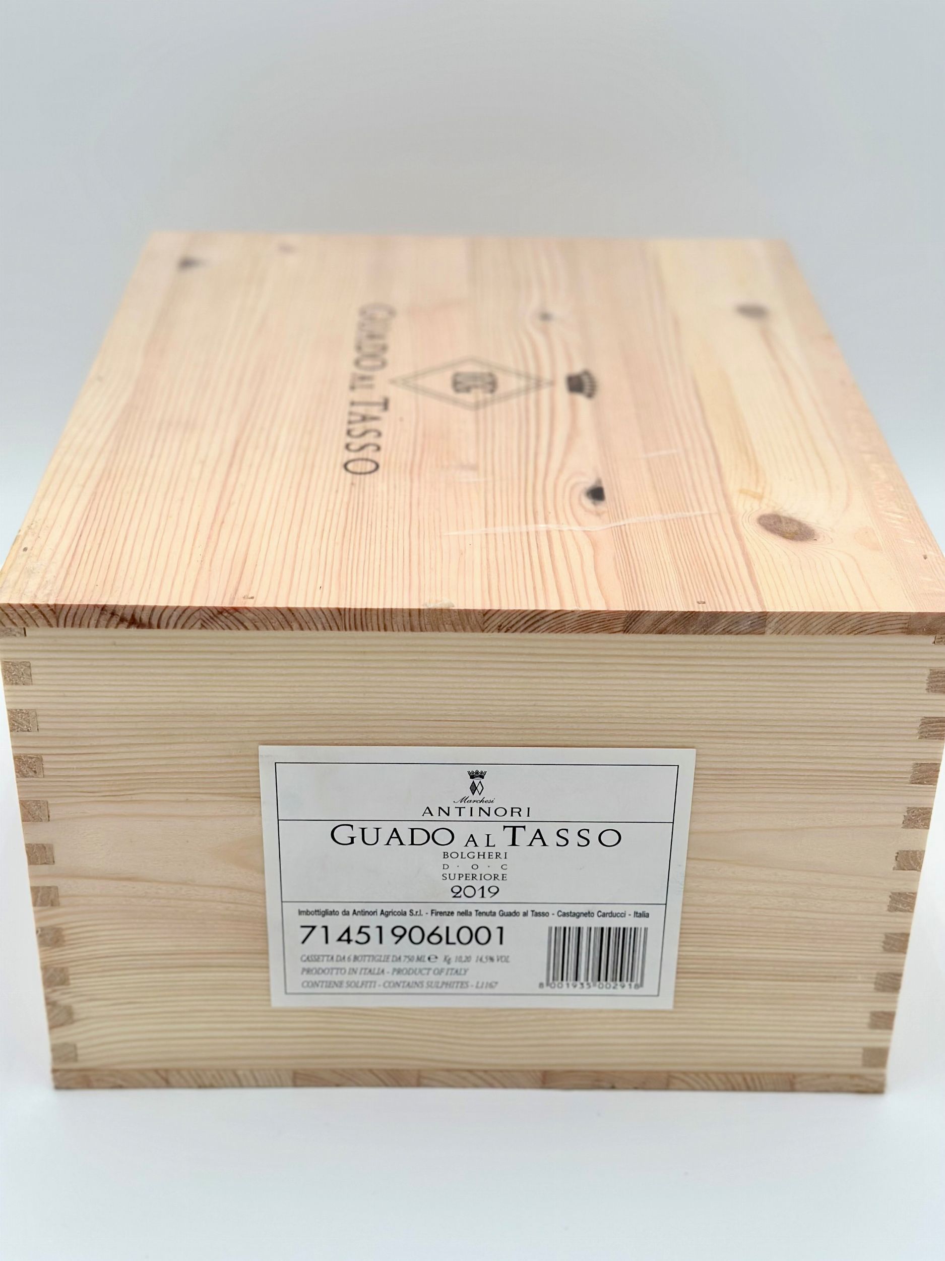 0,75 2019 Toscana, Bolgheri Superiore DOC - 6 bottiglie (bt), annata 2019.Livello: entro il collo (WN), livello di colmatura standard.Confezione: scatola di legno originale (OWC), ancora regettata.Condition report: etichetta e capsula in perfette condizioni.