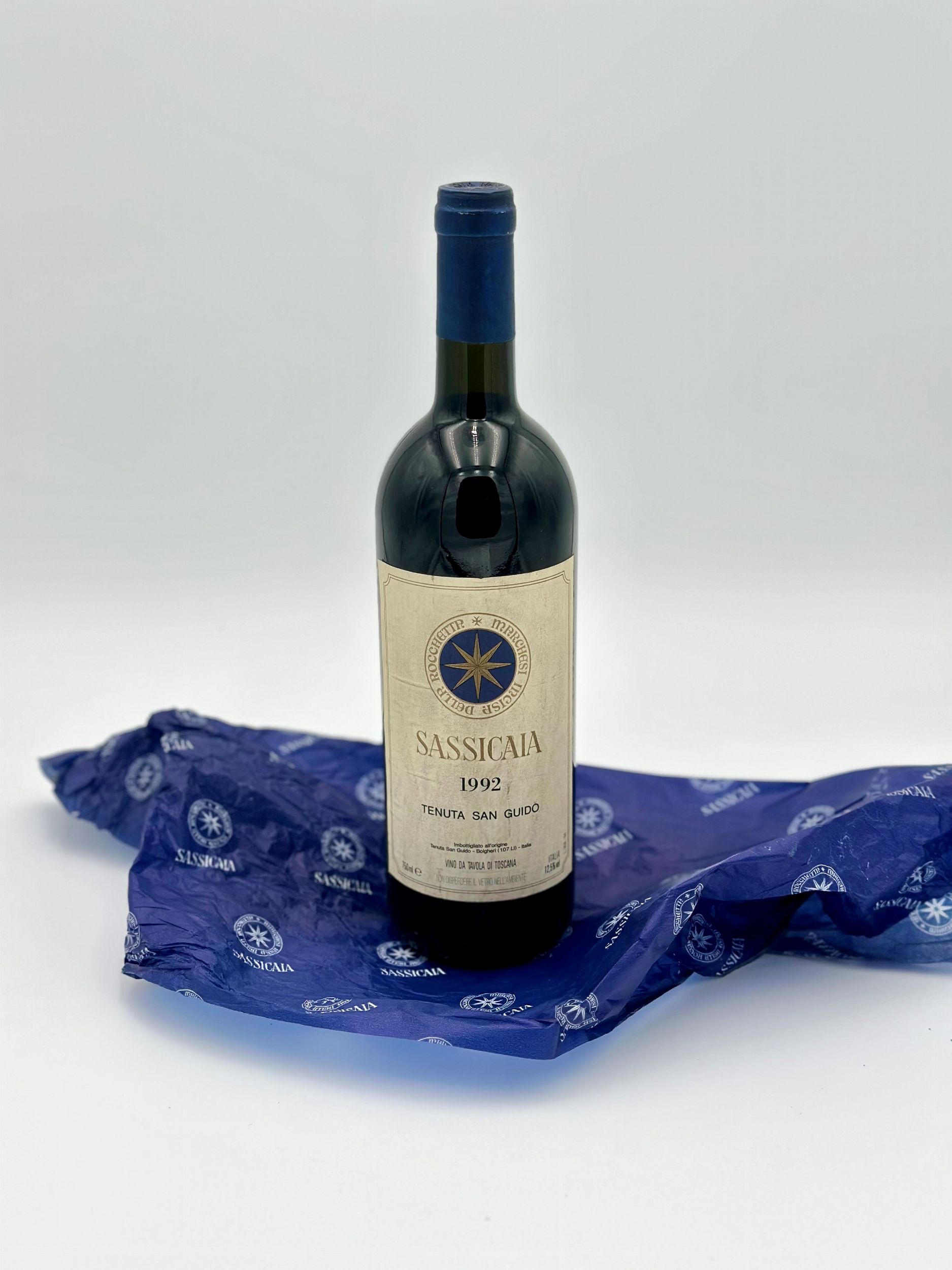 1992 Toscana, Sassicaia DOC - 1 bottiglia (bt), annata 1992.Livello: collo inferiore (BN); nella norma per i vini di qualsiasi età.Condition report: etichetta e capsula in buone condizioni.