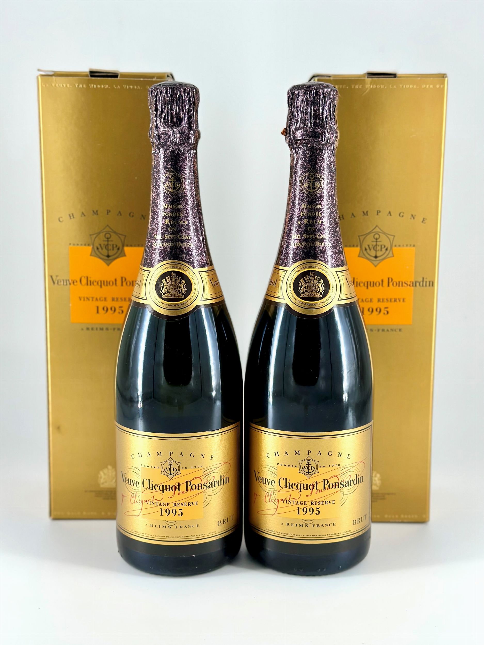 Francia, Champagne, Brut - 2 bottiglie (bt), annata 1995.Livello: entro il collo (WN), livello di colmatura standard.Confezione: scatola originale (OC).Condition report: etichetta e capsula in perfette condizioni.