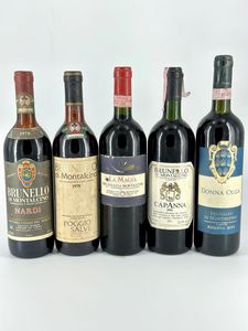 1978 a) Toscana, Brunello di Montalcino DOC - 1 bottiglia (bt), annata 1978. Livello: spalla media (MS), normale [..]
