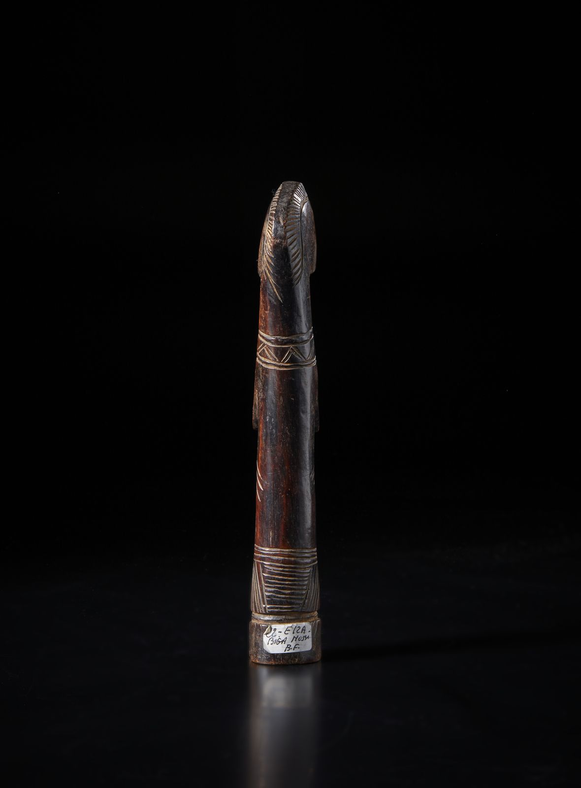 Bambola di fertilità Biga a figura femminile stilizzata. Legno duro a patina scu [..]