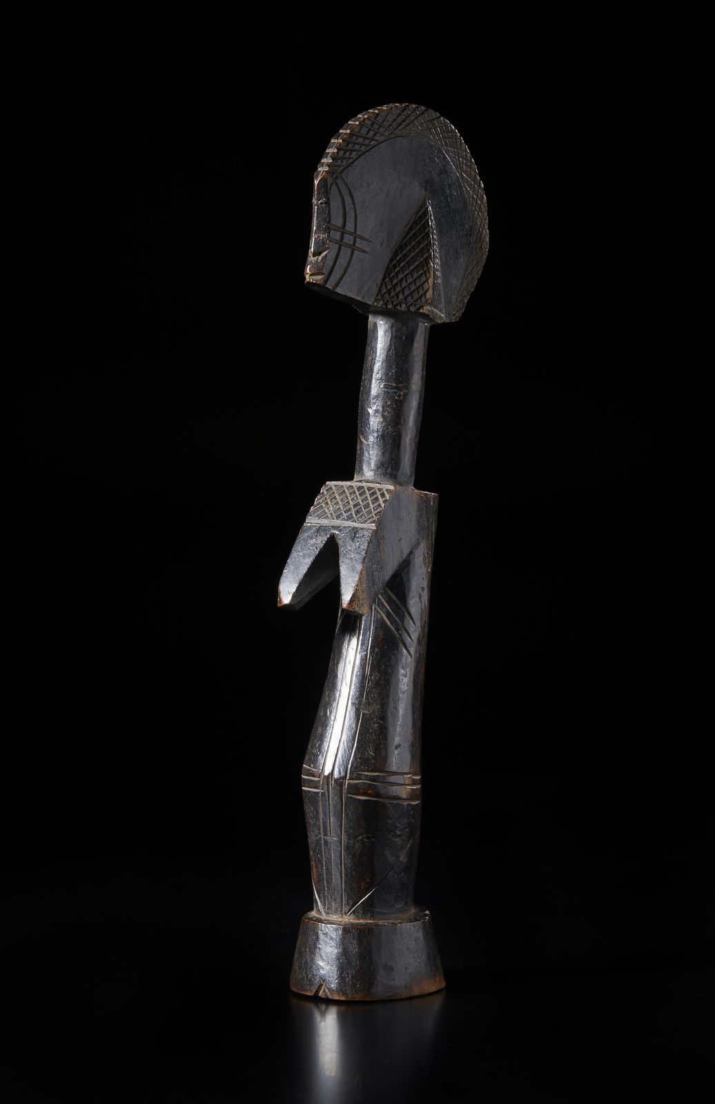 Bambola di fertilità Biga a figura femminile stilizzata. Legno duro a patina scu [..]