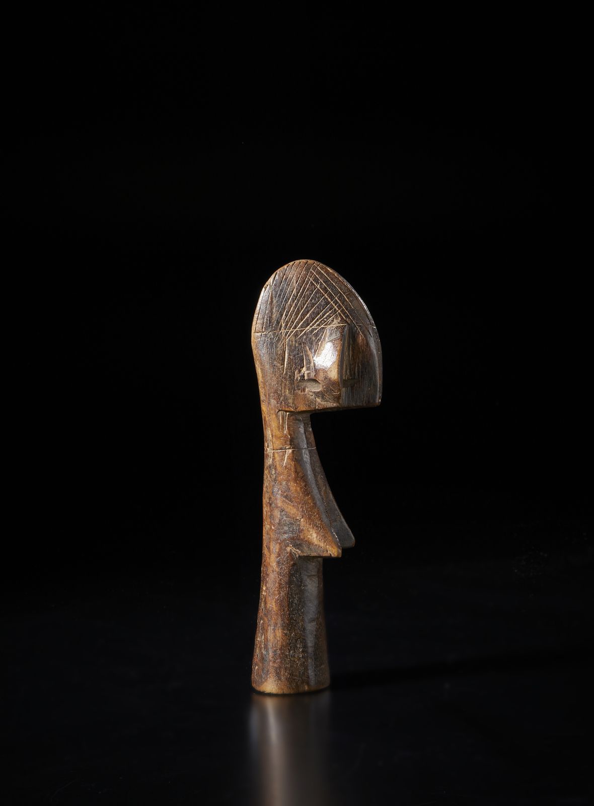 Bambola di fertilità Biga in forma femminile stilizzata. Legno duro a patina mar [..]