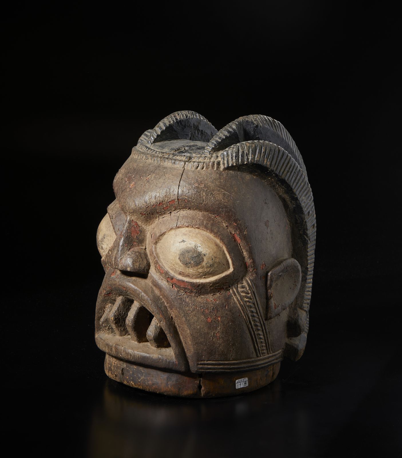 Grande maschera casco Epa. Legno duro e pigmenti.