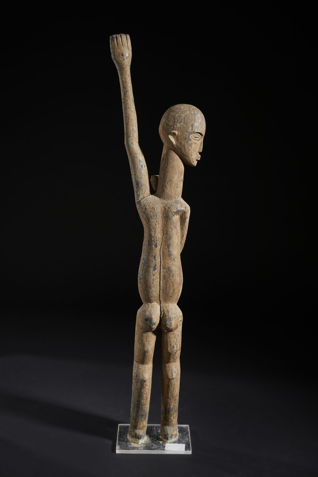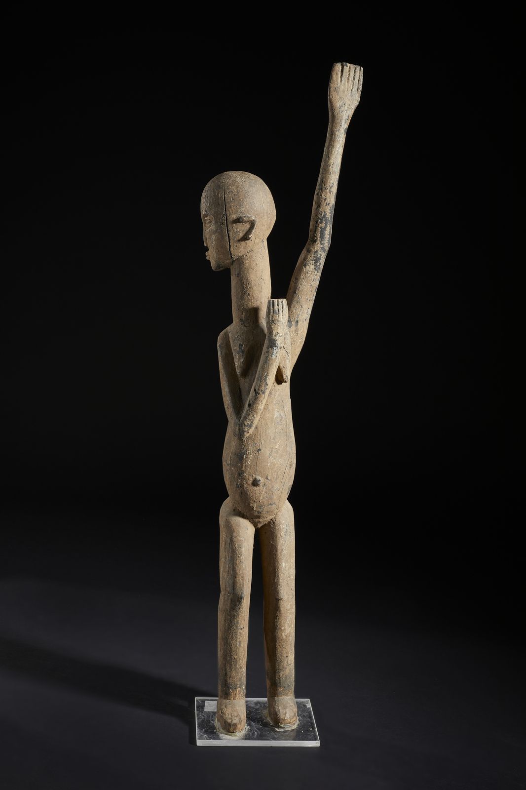 Grande scultura antropomorfa Bateba con braccio alzato. Legno duro a patina chiara [..]