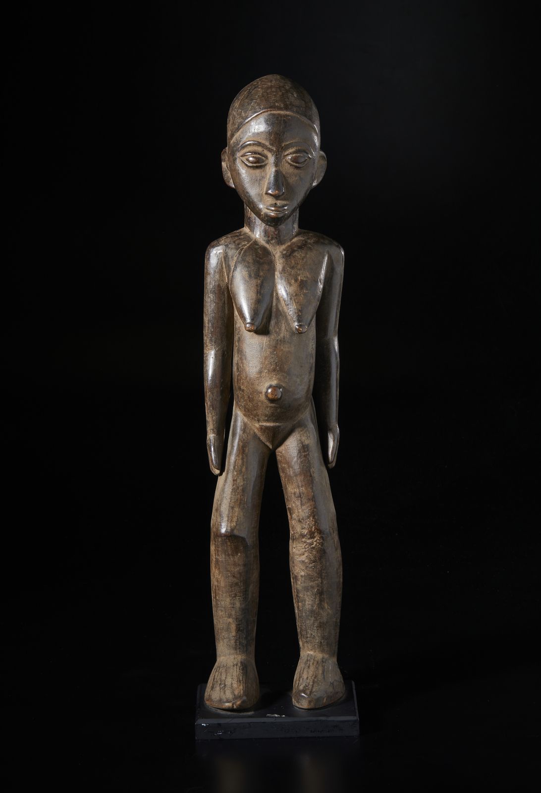 Grande scultura antropomorfa Bateba. Legno duro a patina scura.