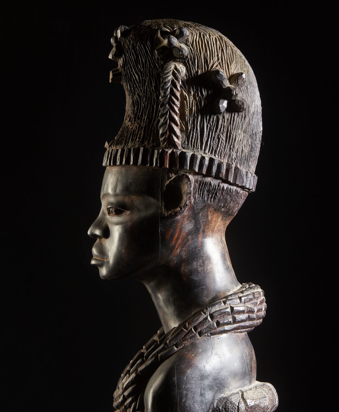 Grande scultura antropomorfa femminile rappresentante una regina africana di ottima [..]