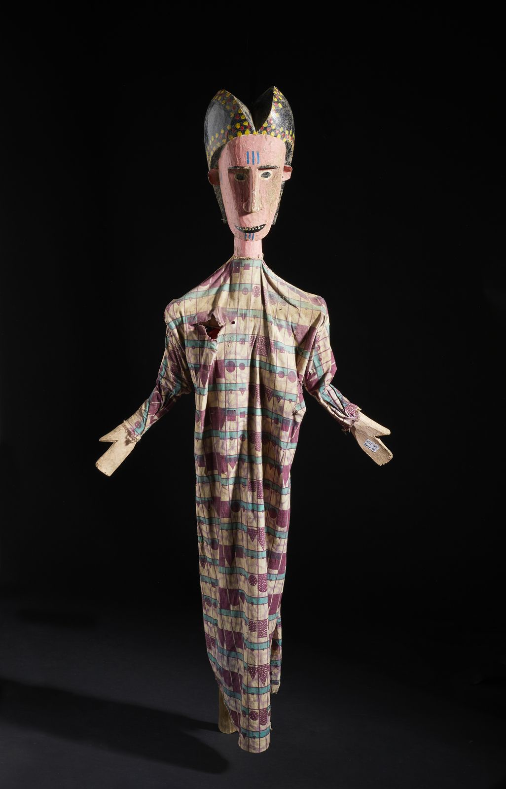 Marionetta Sogo Bo. Legno, pigmenti e tessuto.
