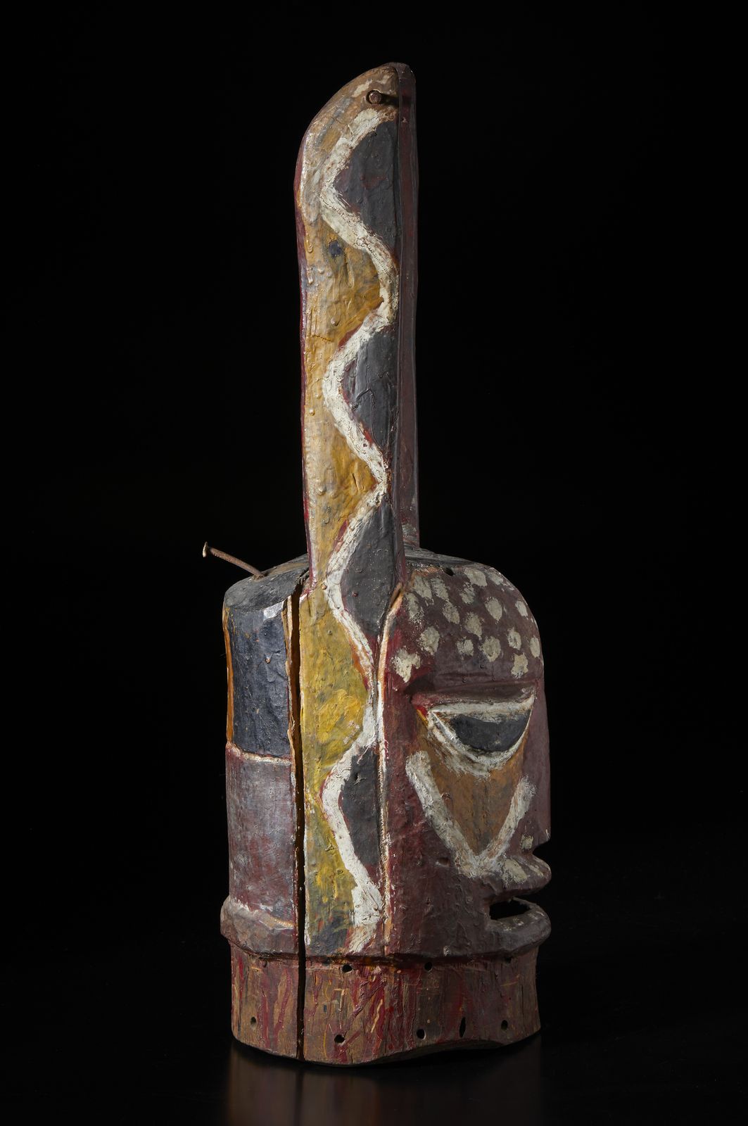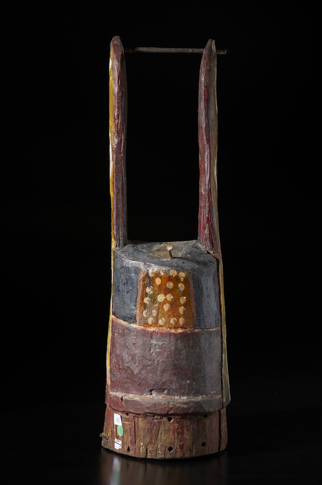 Maschera a casco antropozoomorfa Epa. Legno duro, pigmenti e ferro.