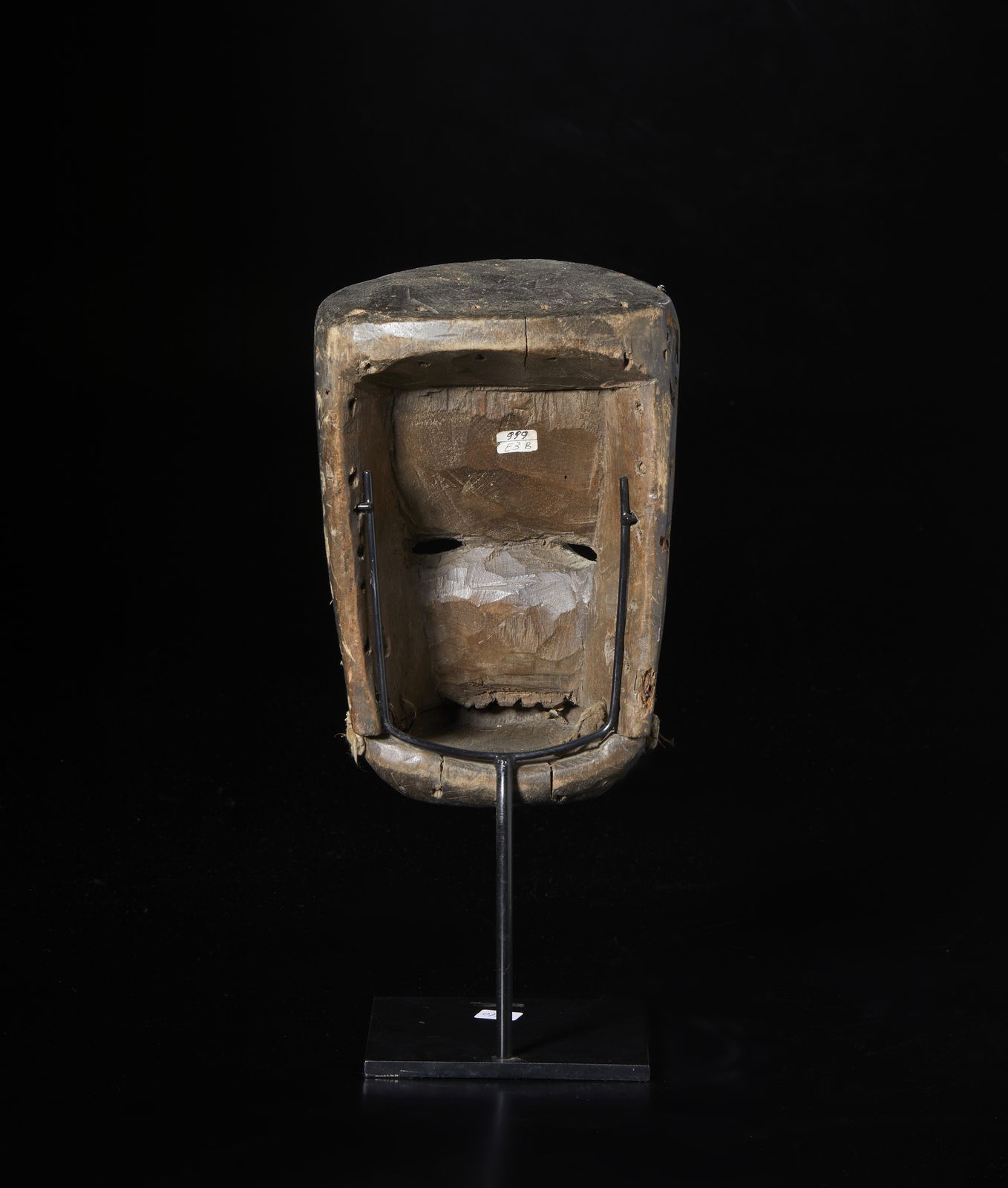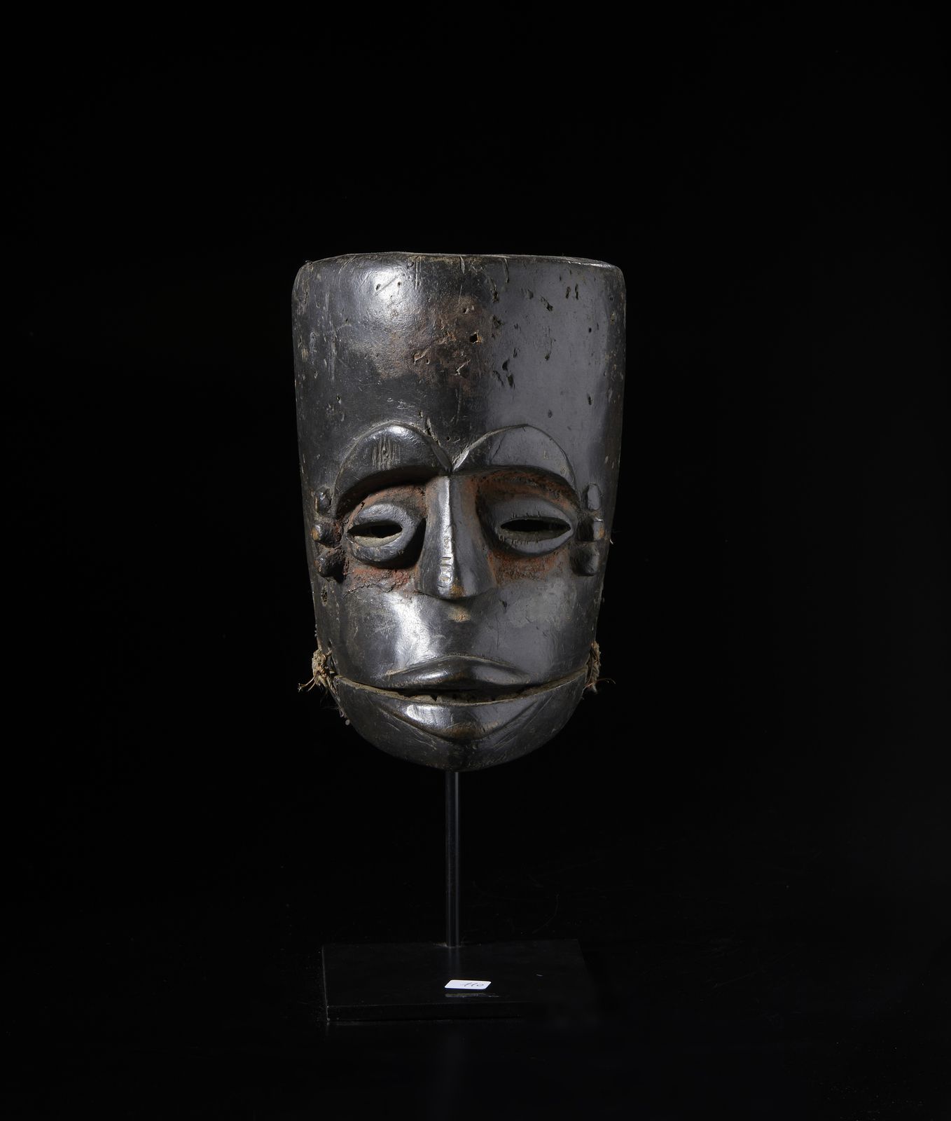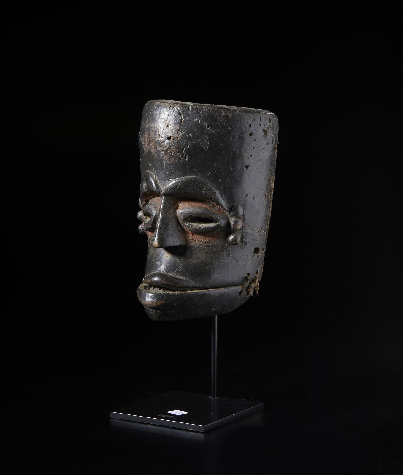 Maschera antropomorfa con mascella mobile.Legno duro a patina nera, pigmenti e c [..]