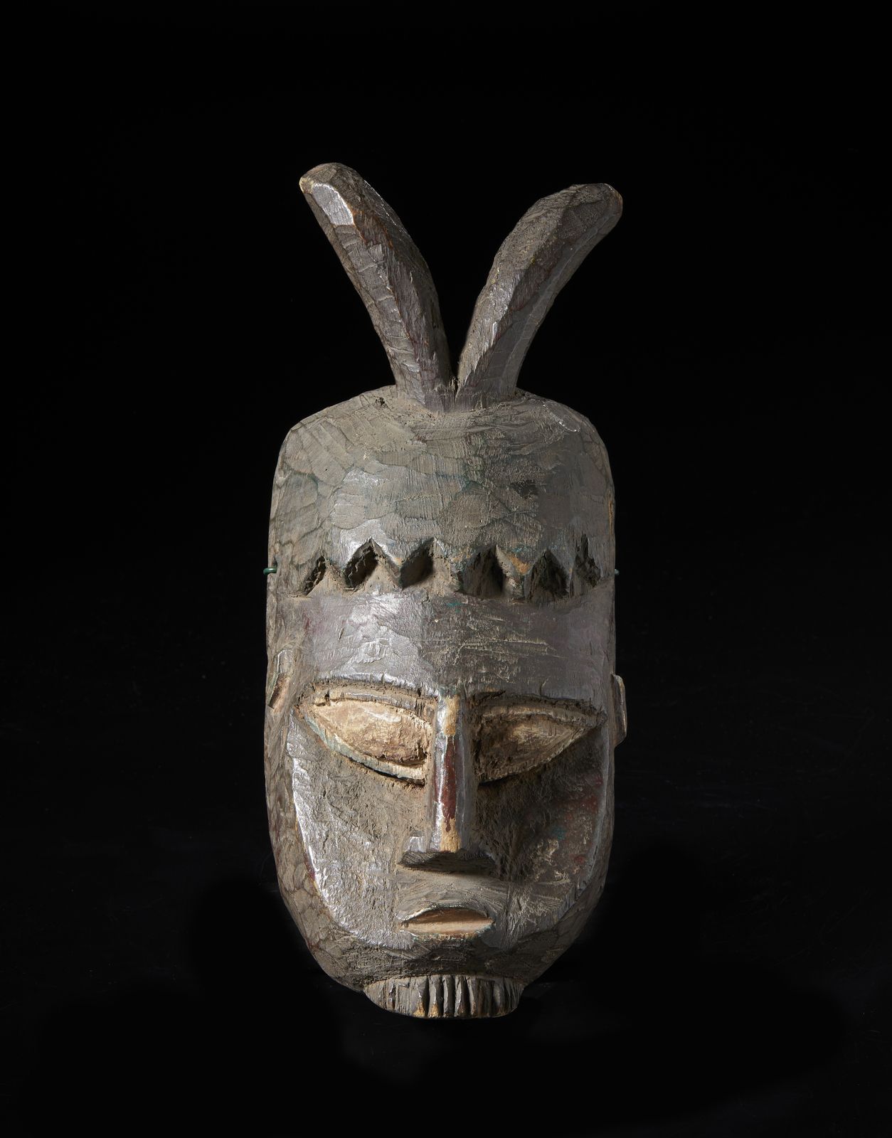 Maschera antropozoomorfa. Legno duro, caolino e pigmenti.