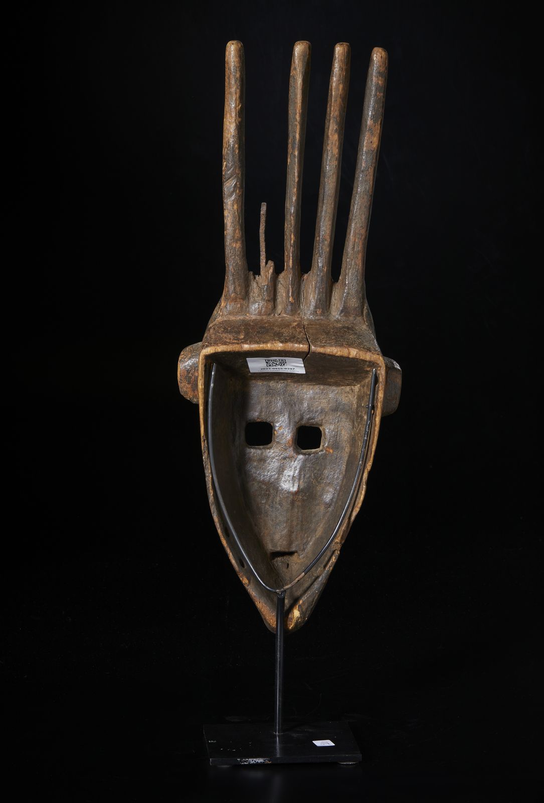 Maschera antropozoomorfa Ntomo caratterizzata da cinque corna di cui una mancante.Legno [..]