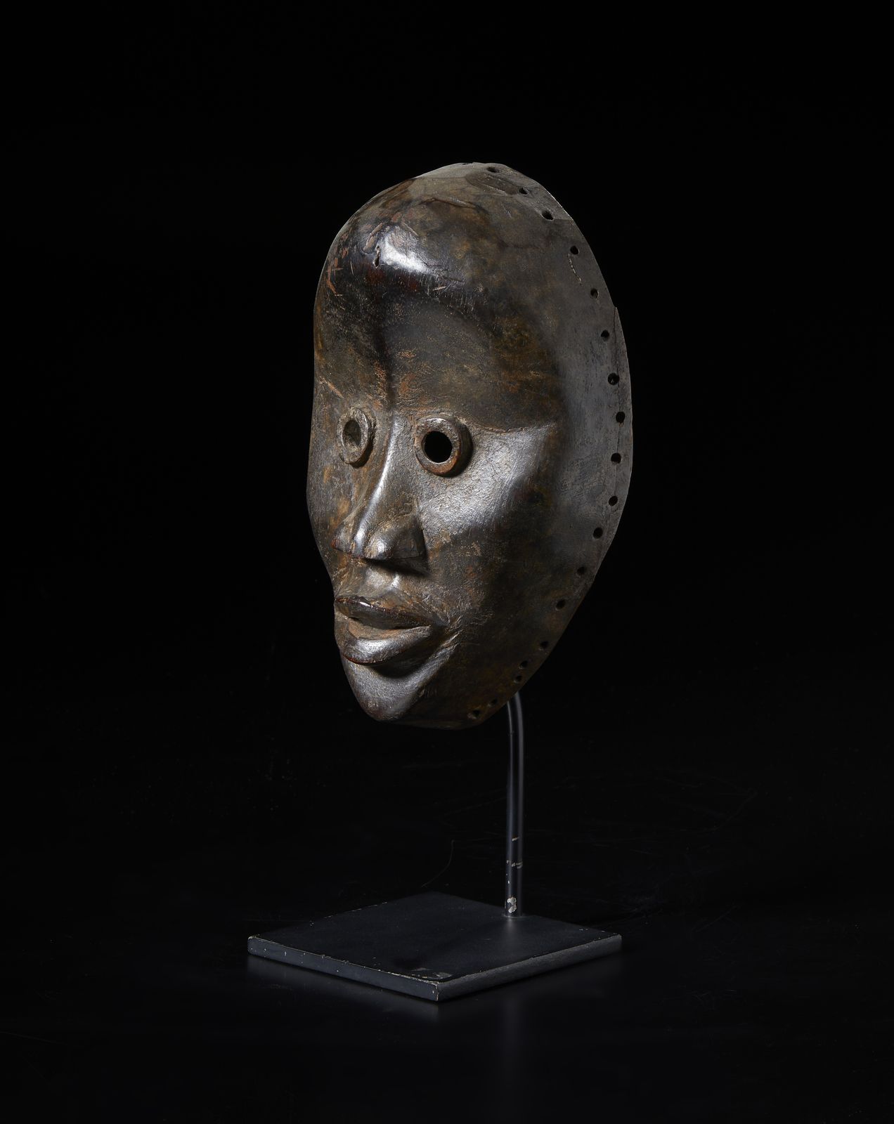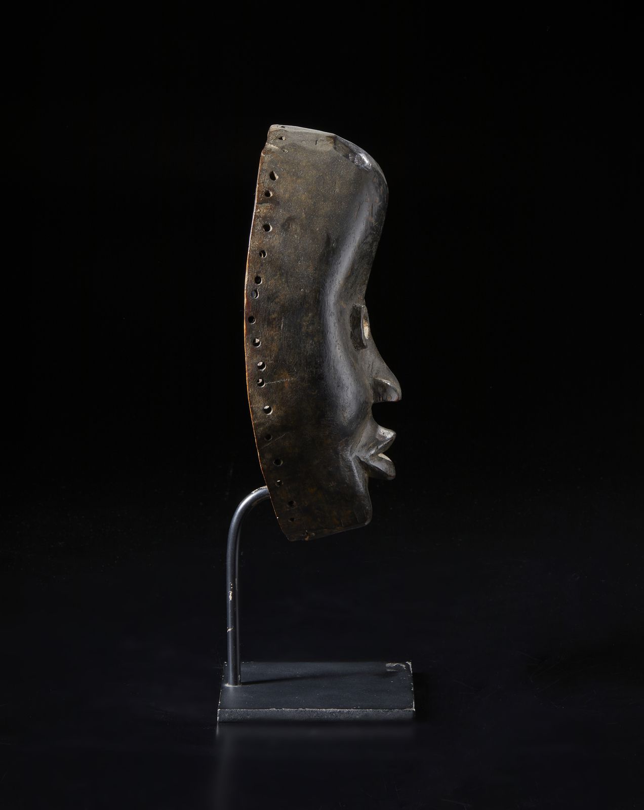 Maschera con occhi tubolari. Legno duro a patina scura.