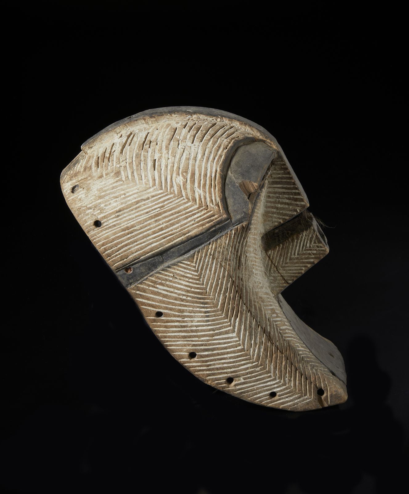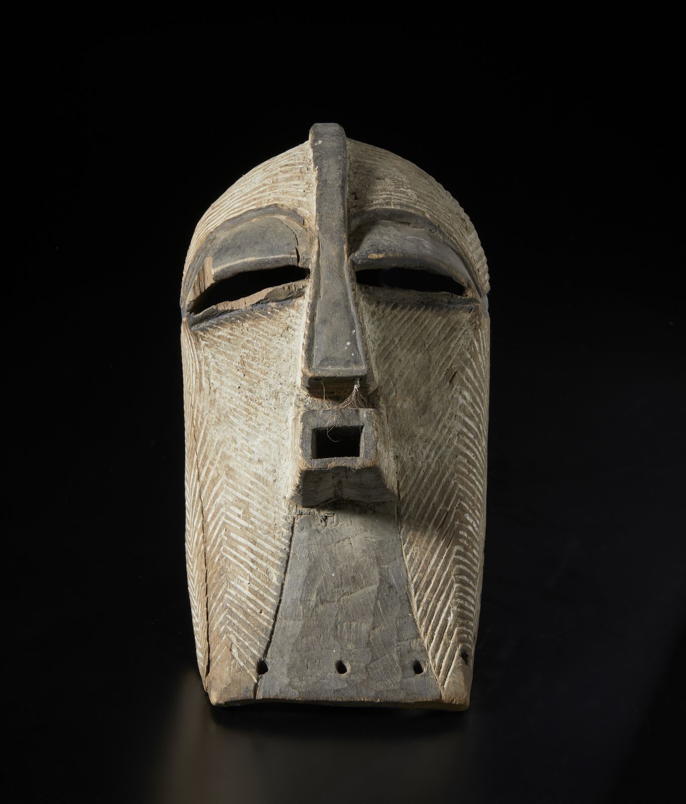 Maschera Kifwebe. Legno con caolino e tracce policrome.