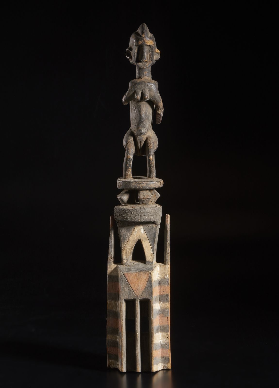 Maschera Walu con scultura a figura antropomorfa femminile sovrastante. Legno, [..]